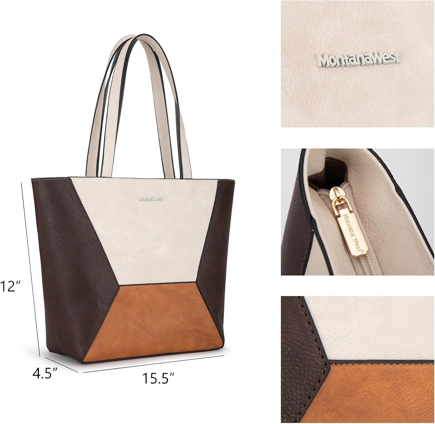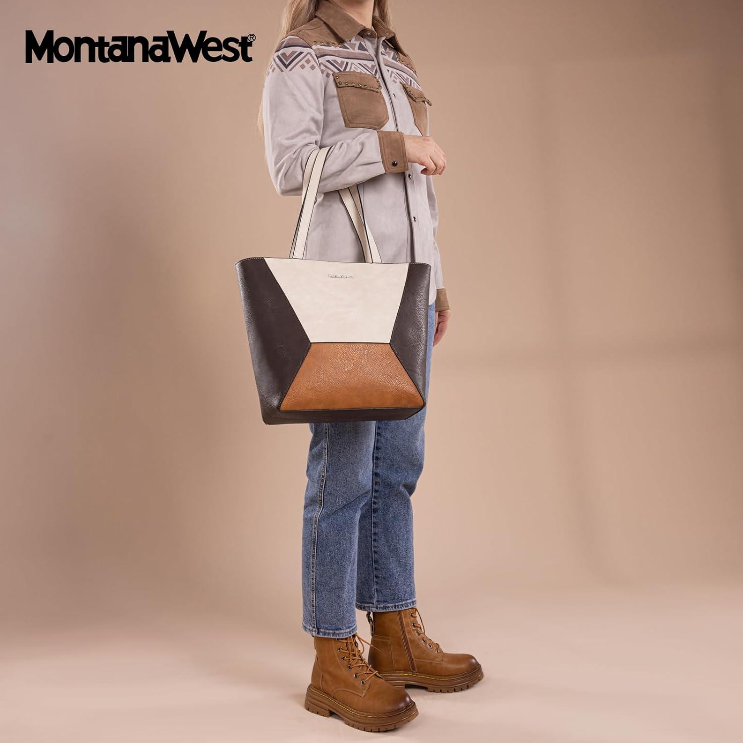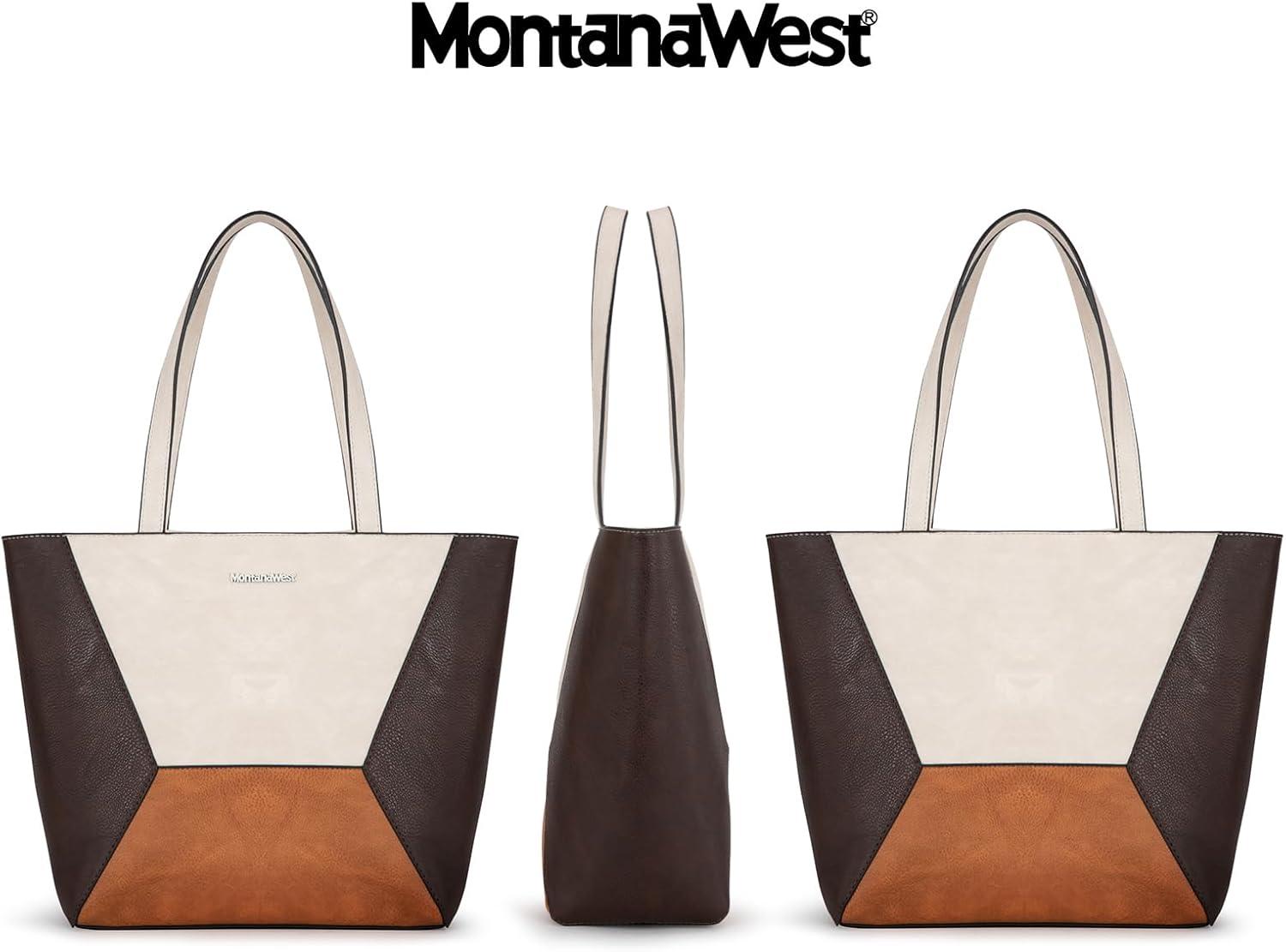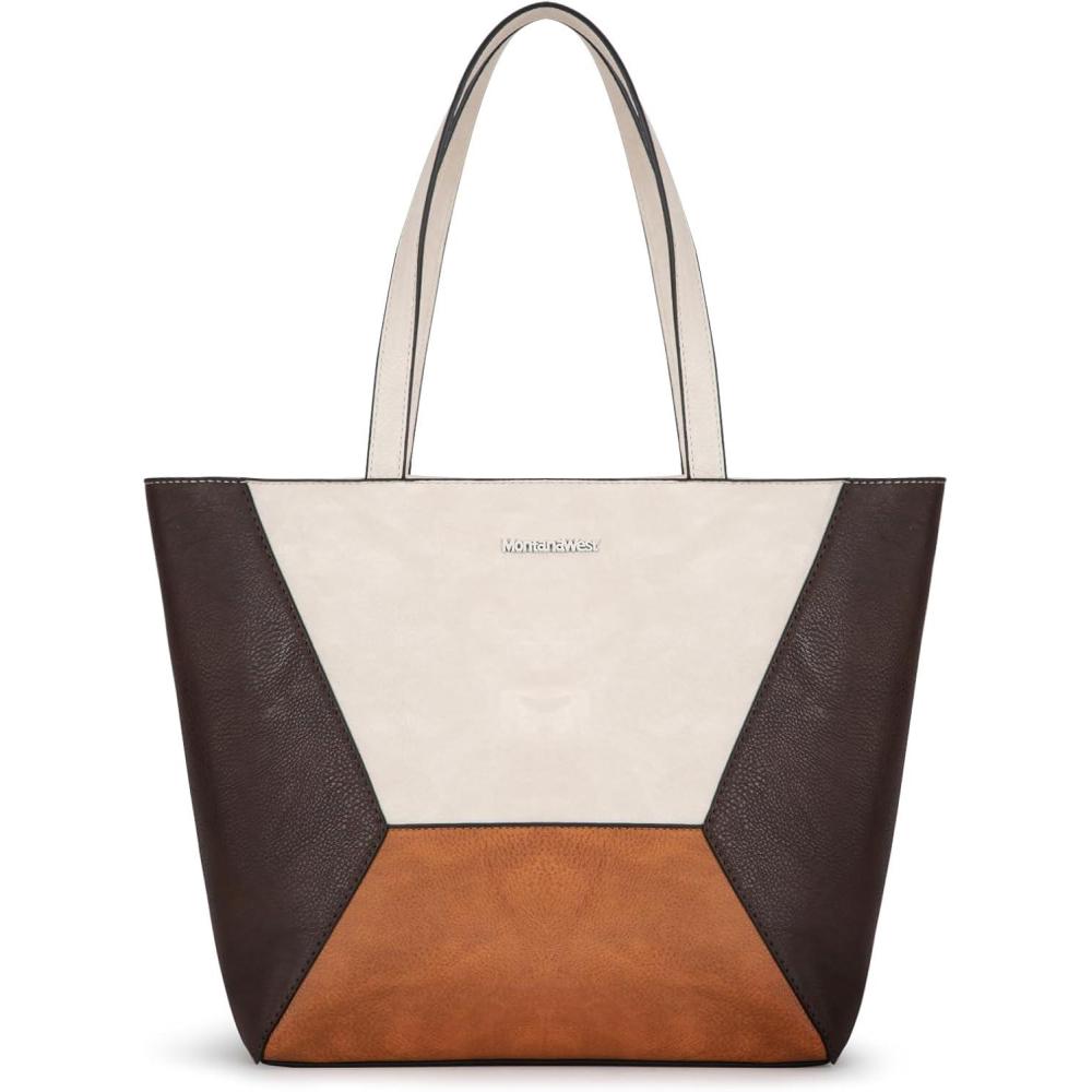 Montana West Tote Bag for Women Work Top Handle Handbags and Purses(Three Chocolate B)