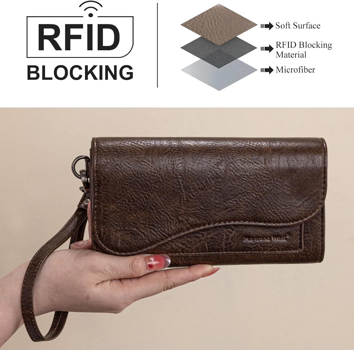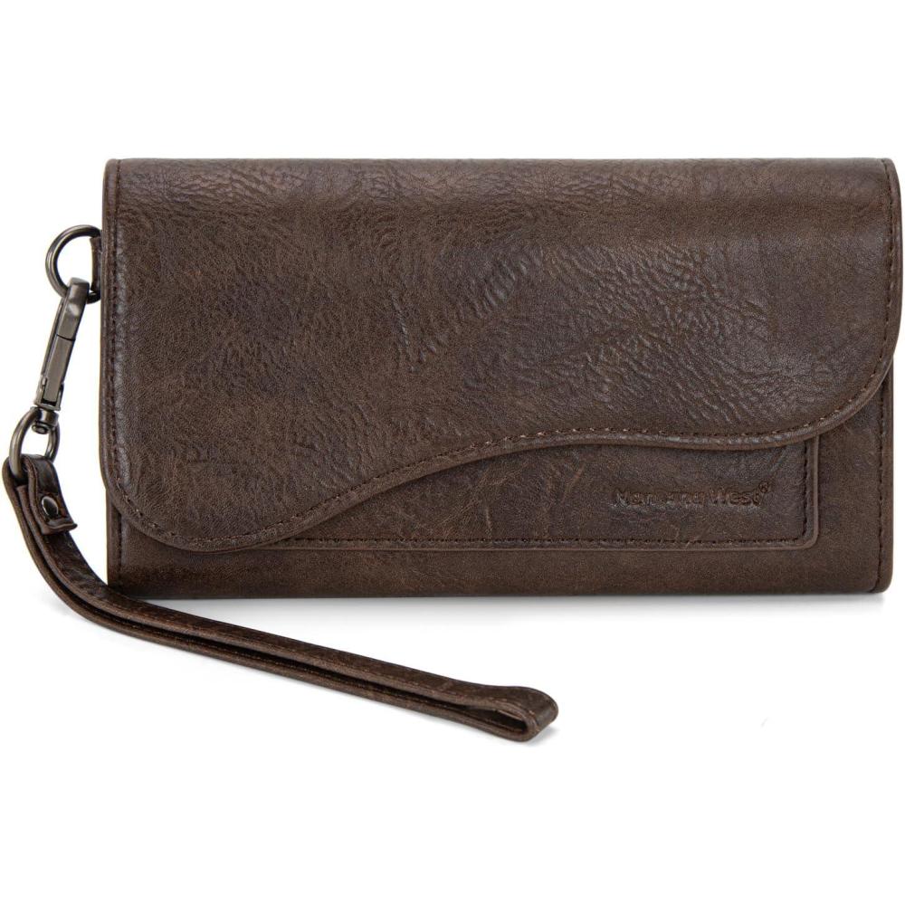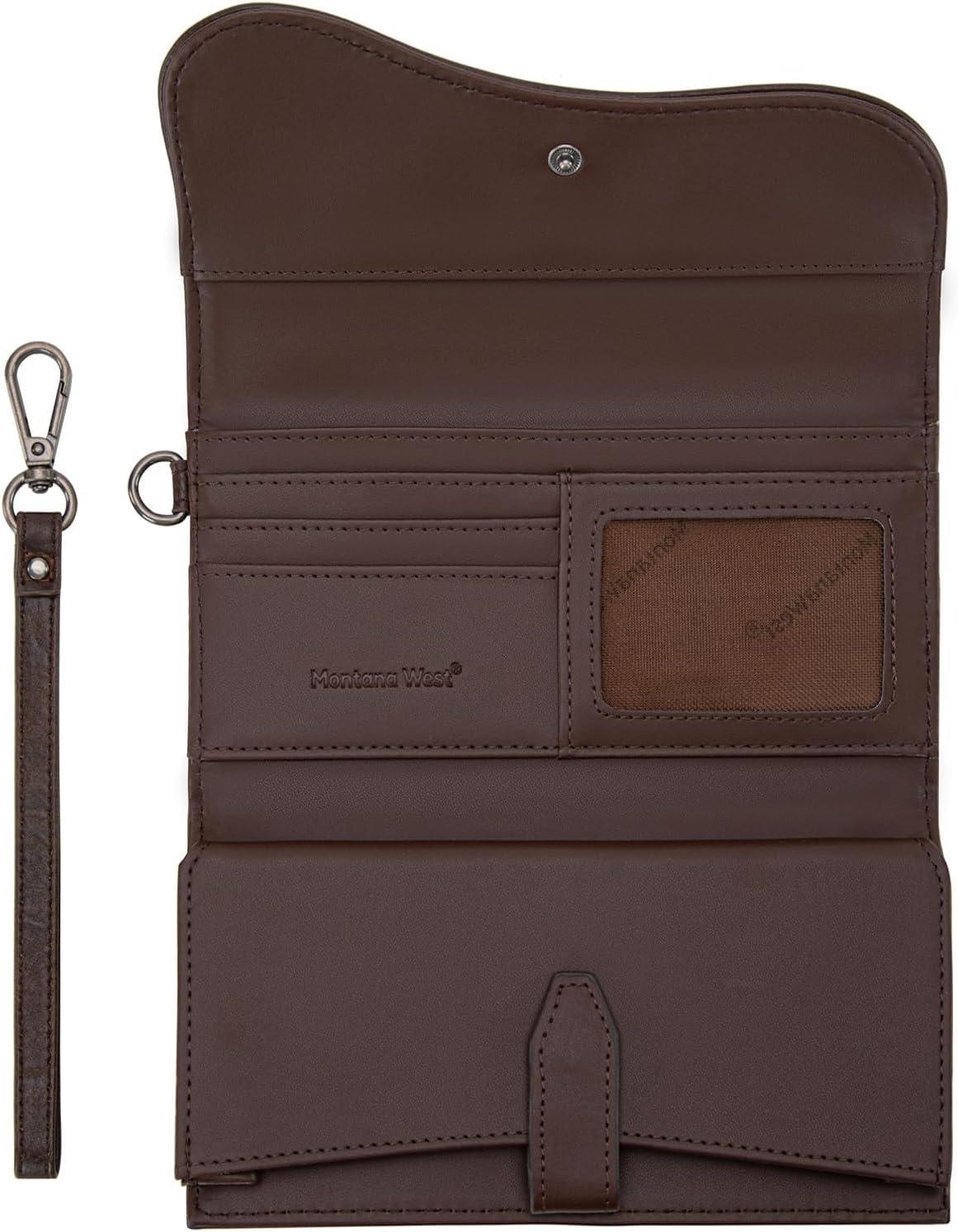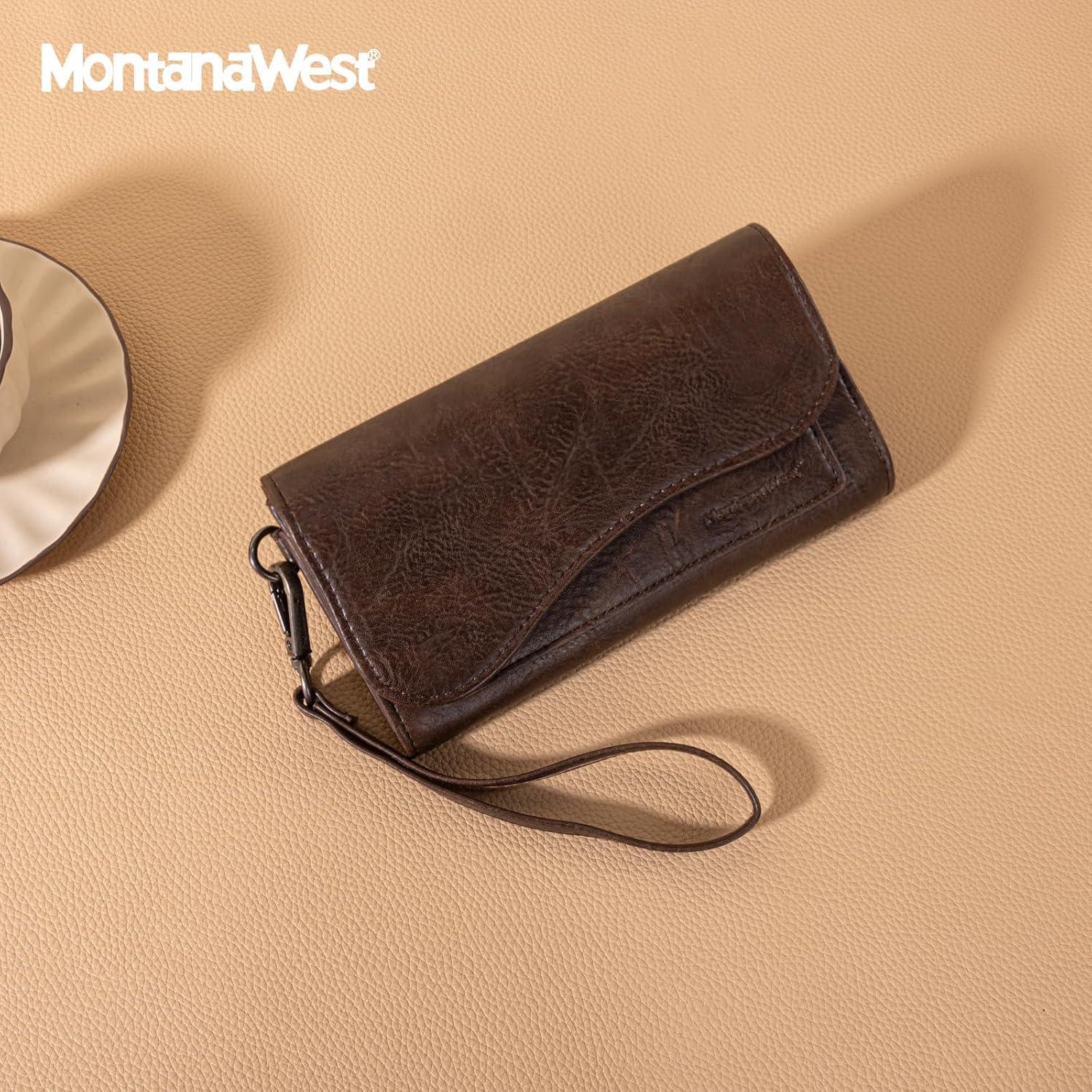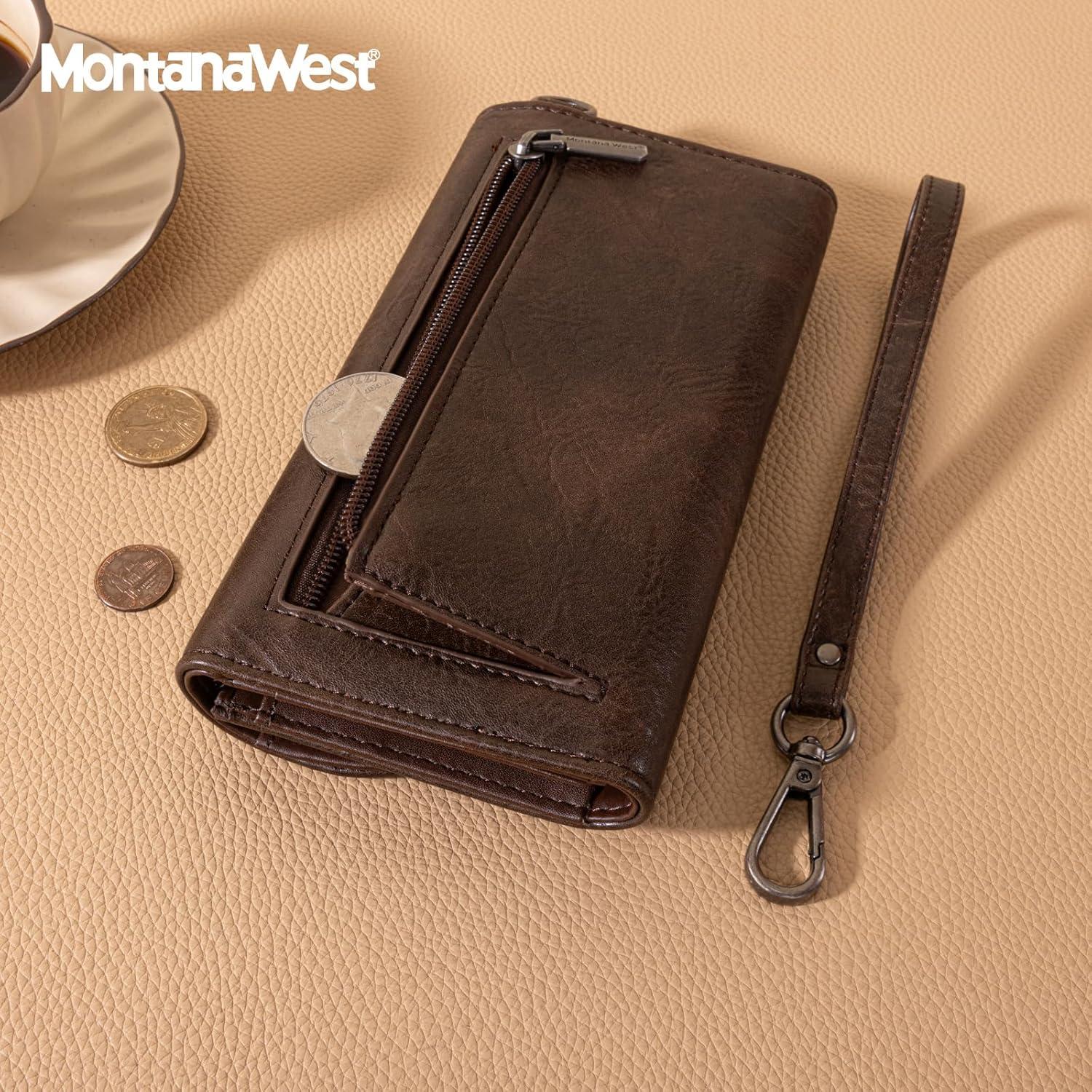 Montana West Wallets for Women Large Phone Wristlet Wallets Trifold Money Organizers with Coin Purse and Wrist Strap(Brown)