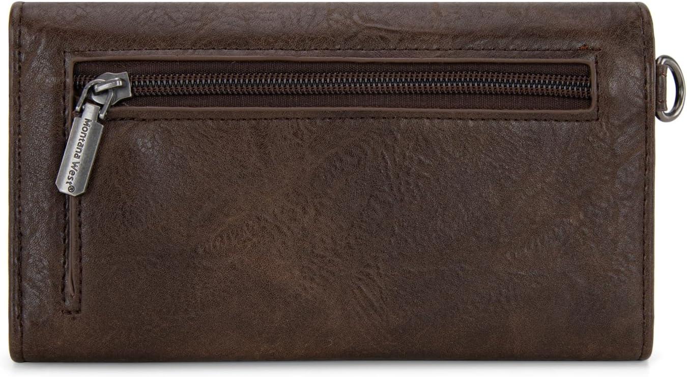 imageMontana West Wallets for Women Large Phone Wristlet Wallets Trifold Money Organizers with Coin Purse and Wrist StrapBrown
