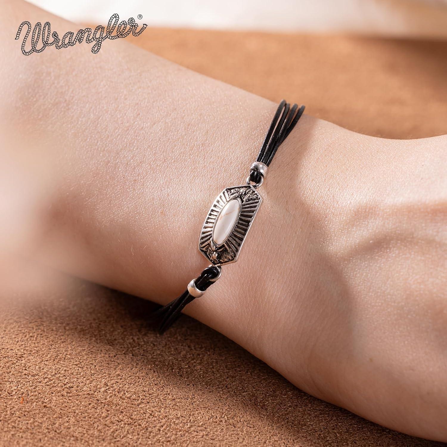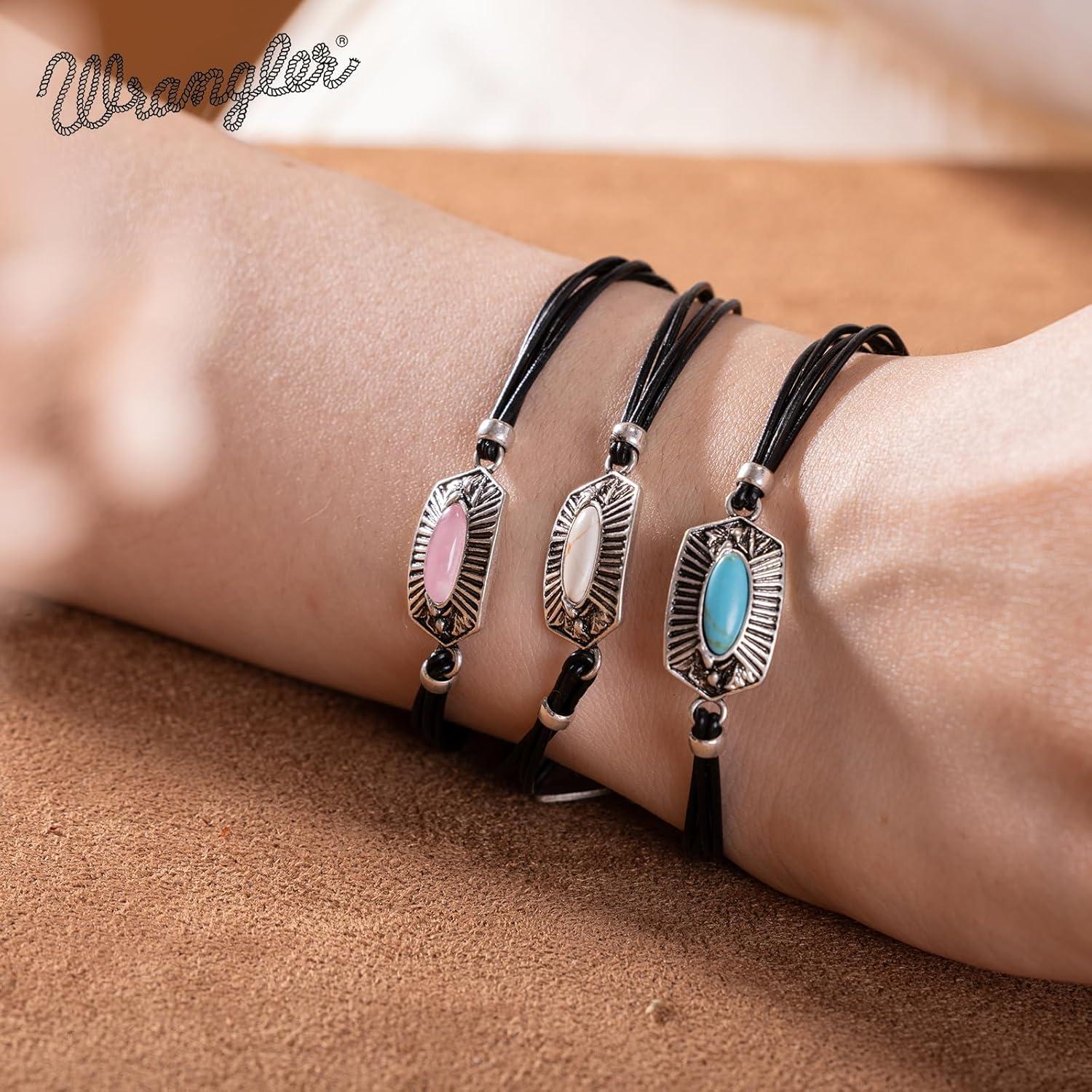 Montana West Wangler Charm Bracelet for Women Western Natural stone Chain Bracelet Dainty Jewelry(silver-white)