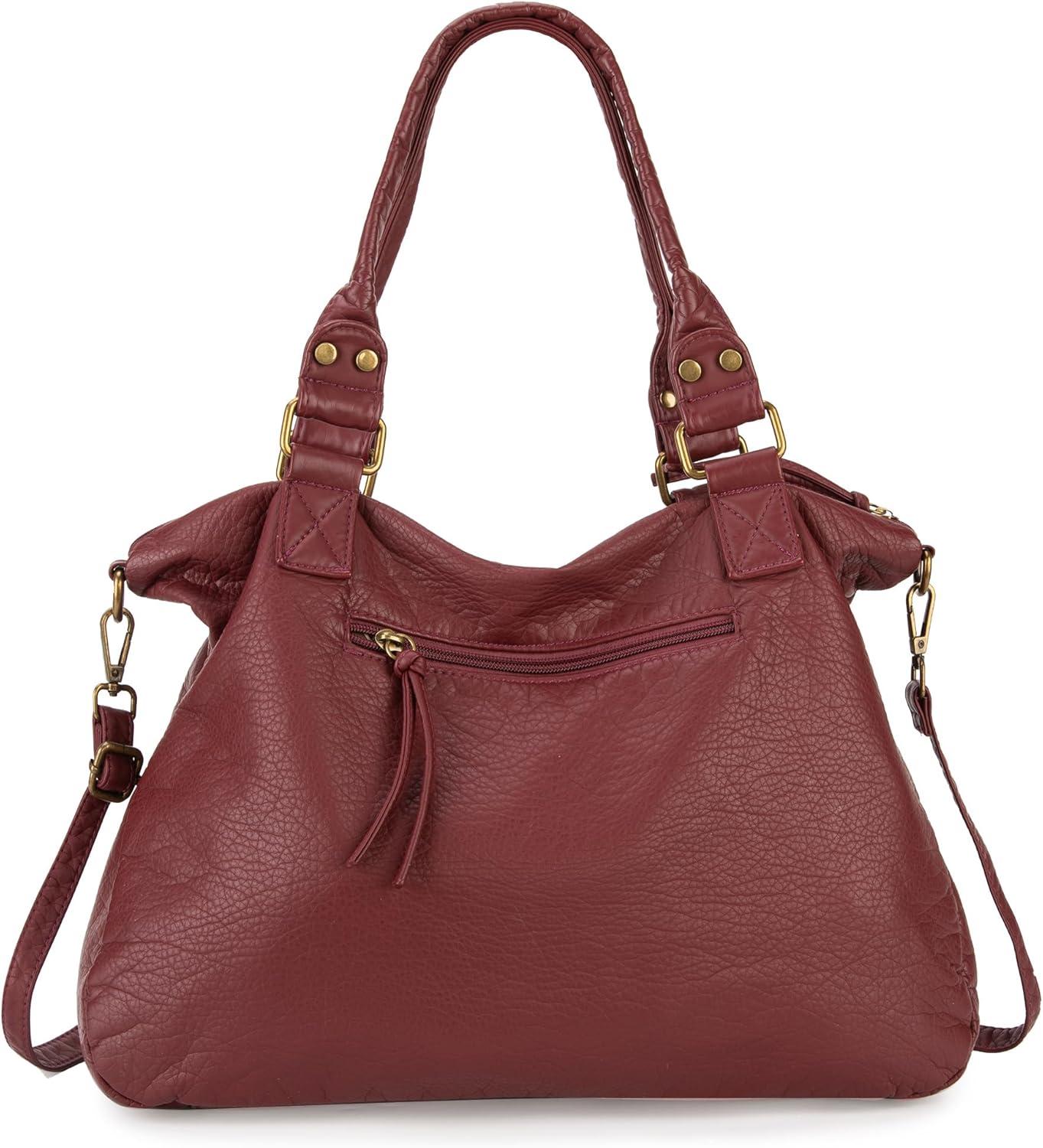 Montana West Washed Leather Hobo Bags for Women Roomy Handbags with Crossbody Strap(217 Burgundy-large)