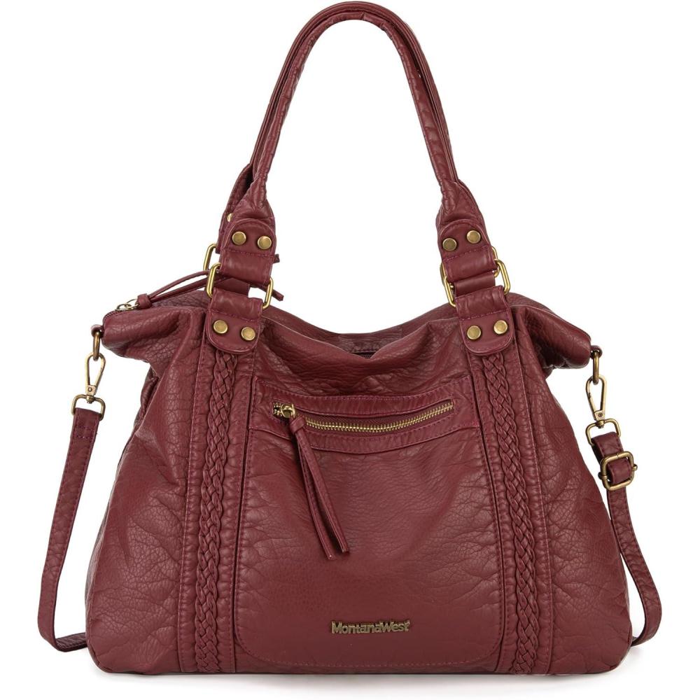 imageMontana West Washed Leather Hobo Bags for Women Roomy Handbags with Crossbody Strap217 Burgundylarge