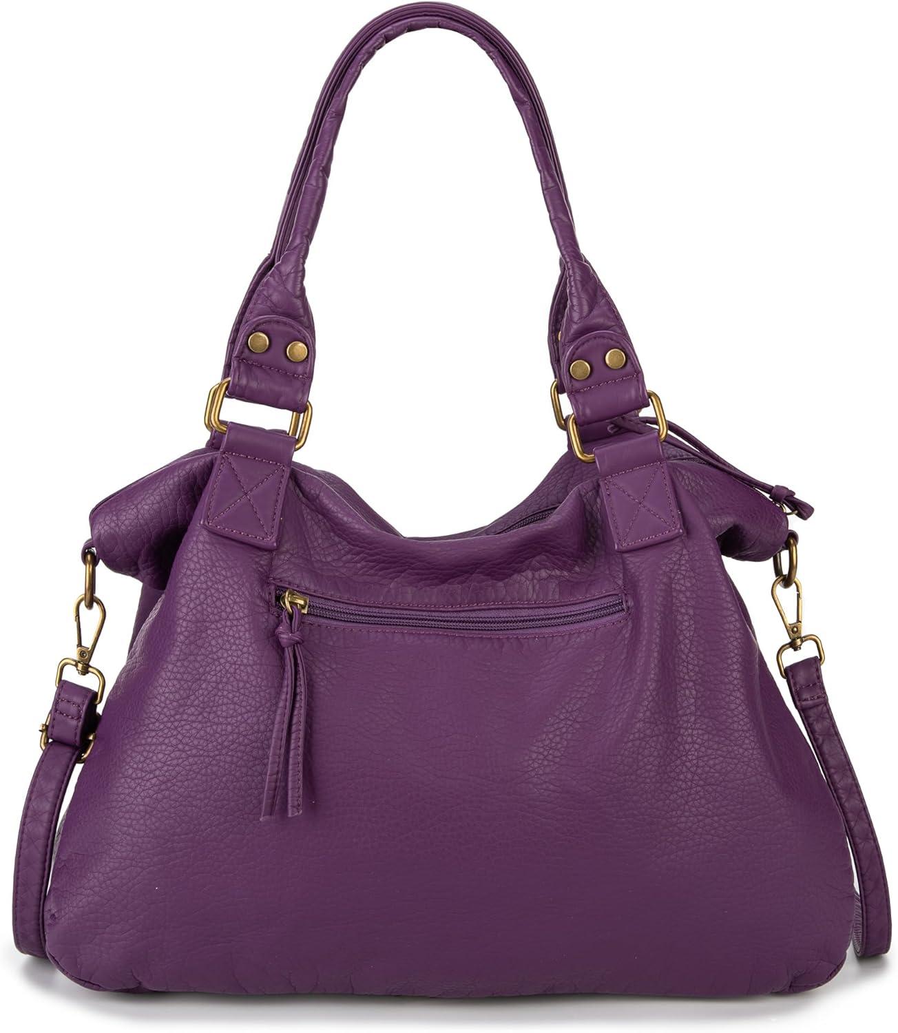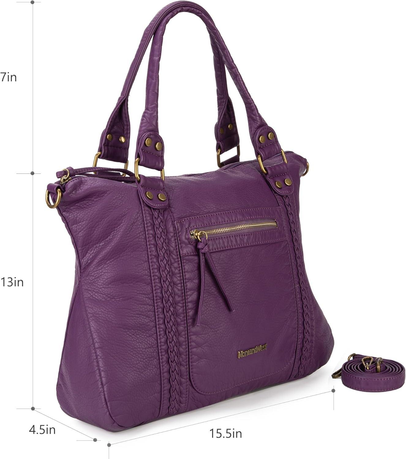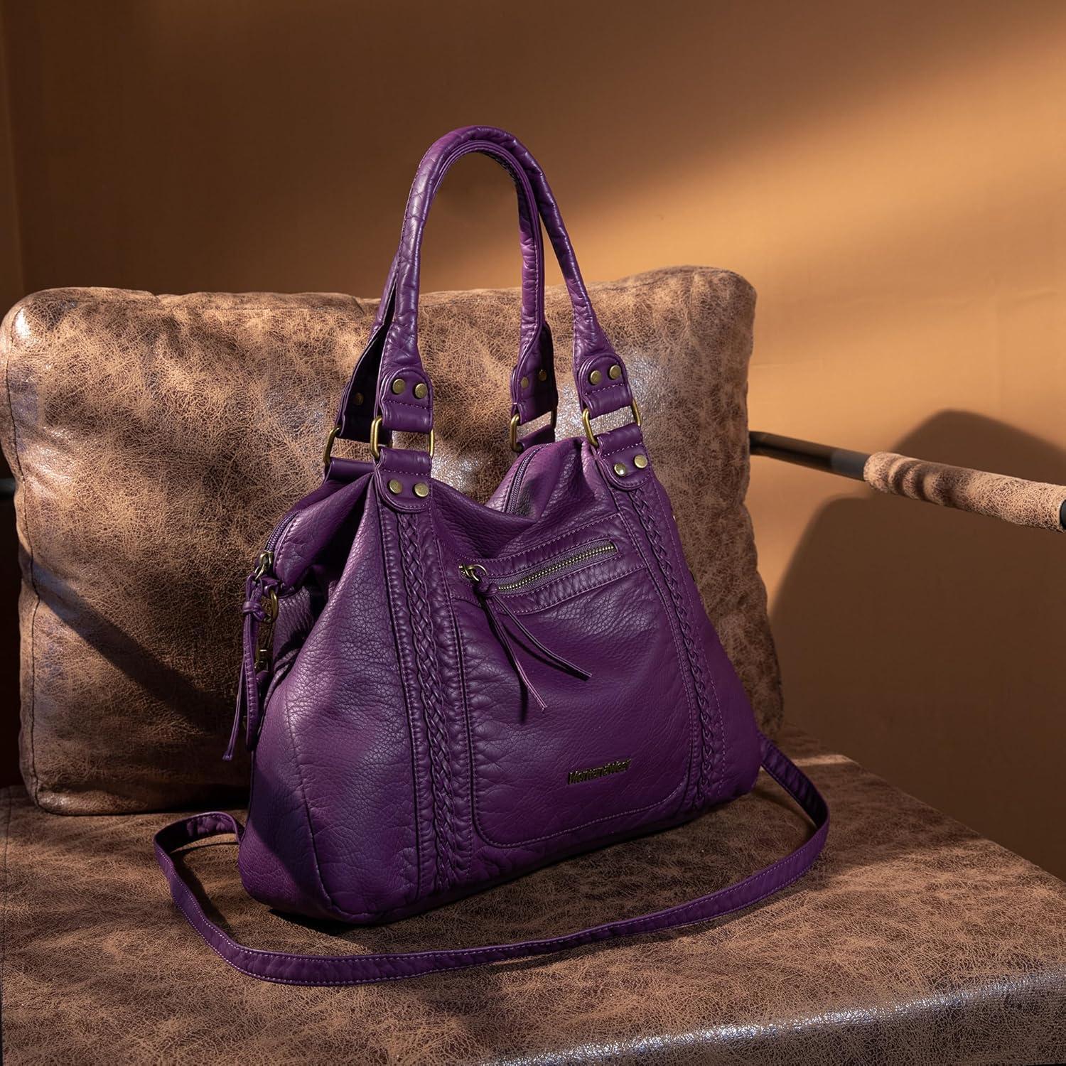 Montana West Washed Leather Hobo Bags for Women Roomy Handbags with Crossbody Strap(217 Purple-large)