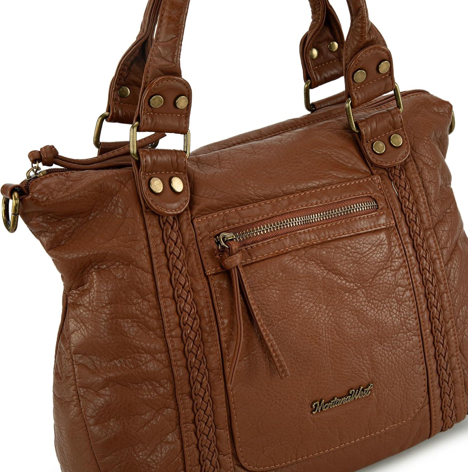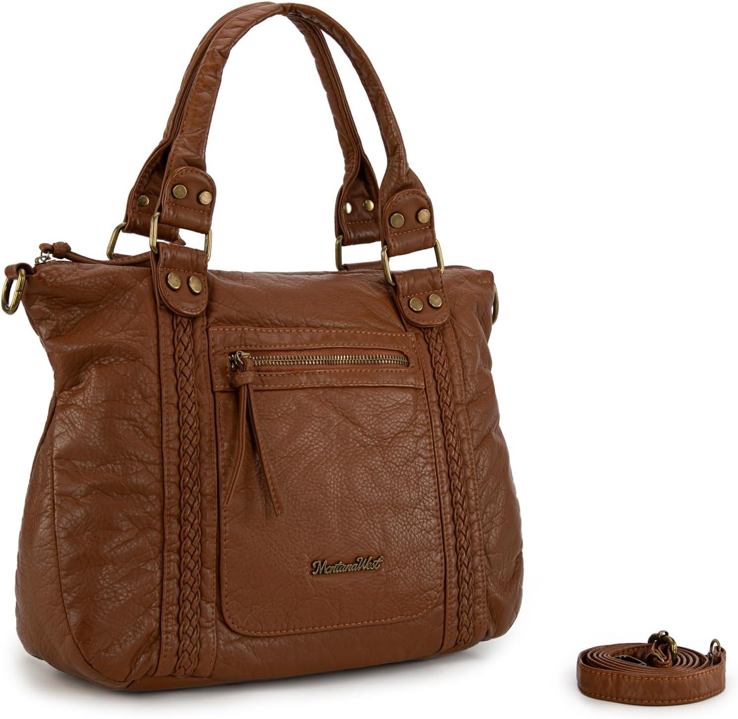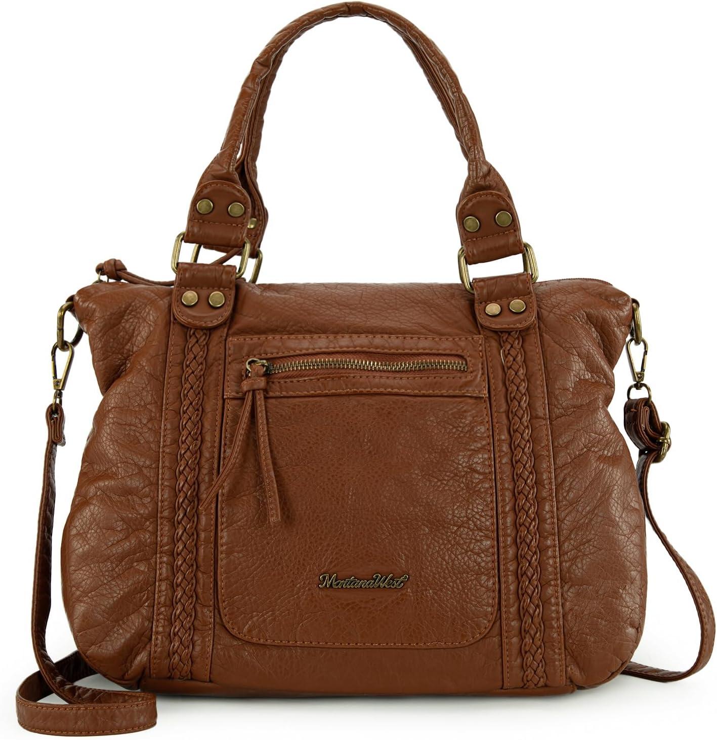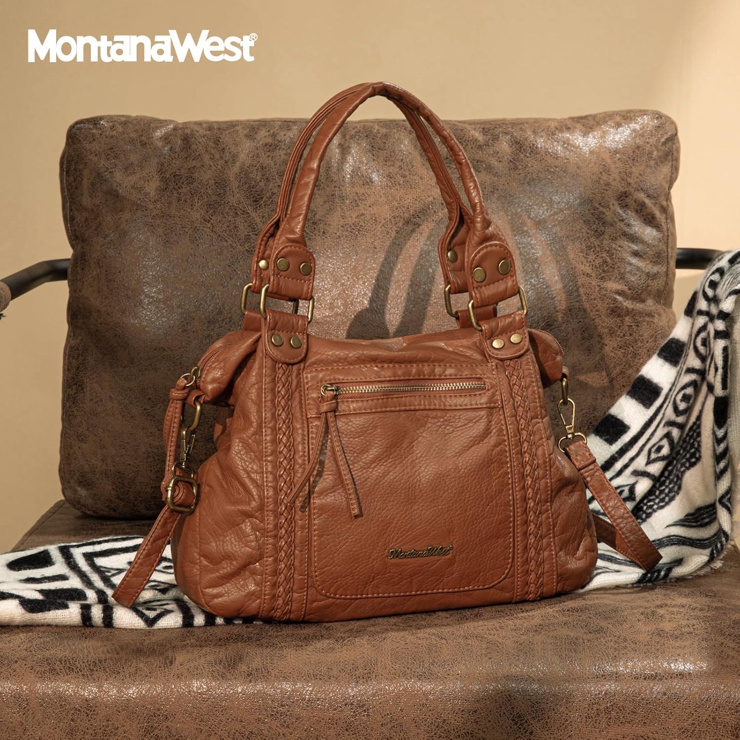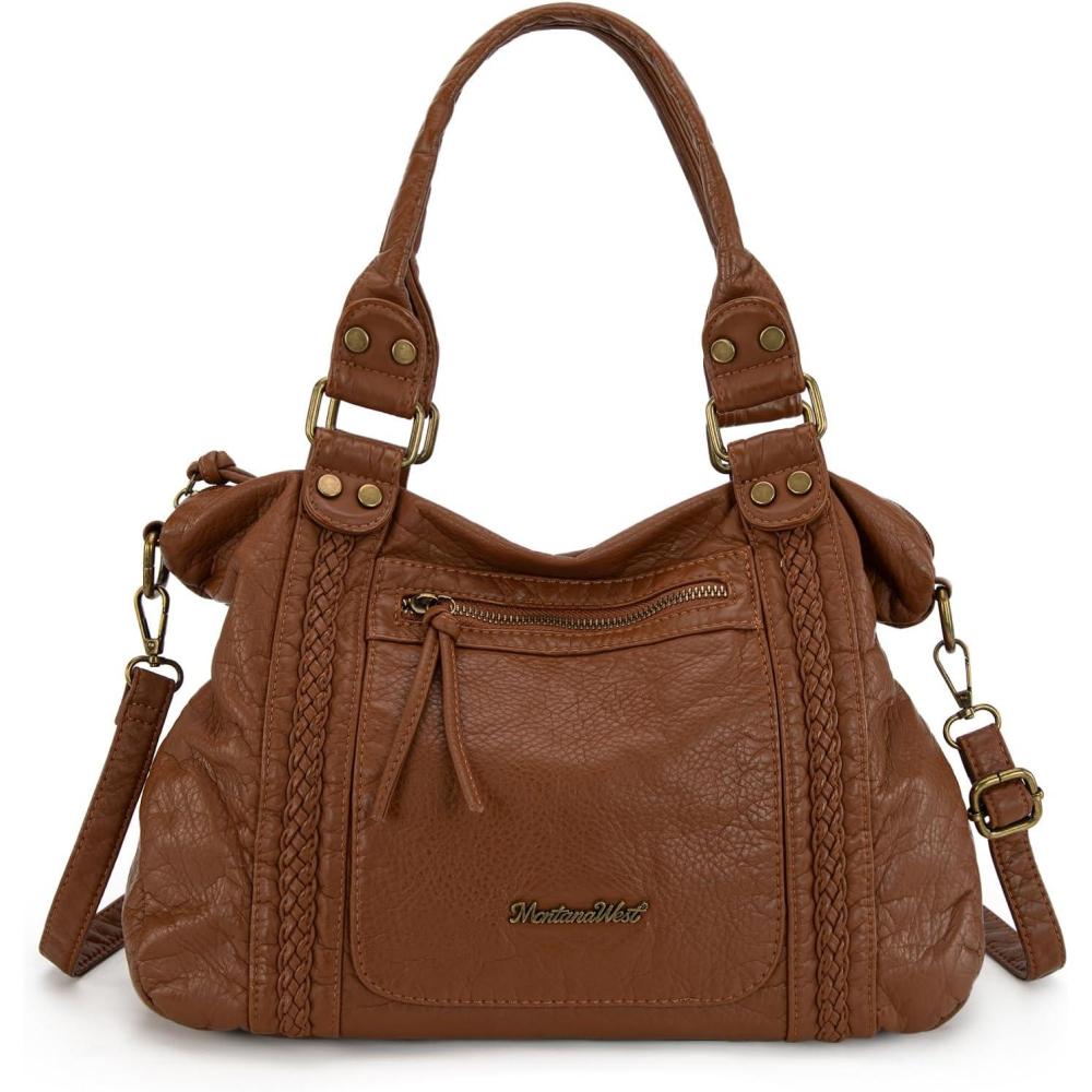 imageMontana West Washed Leather Hobo Bags for Women Roomy Handbags with Crossbody Strap581 Brown