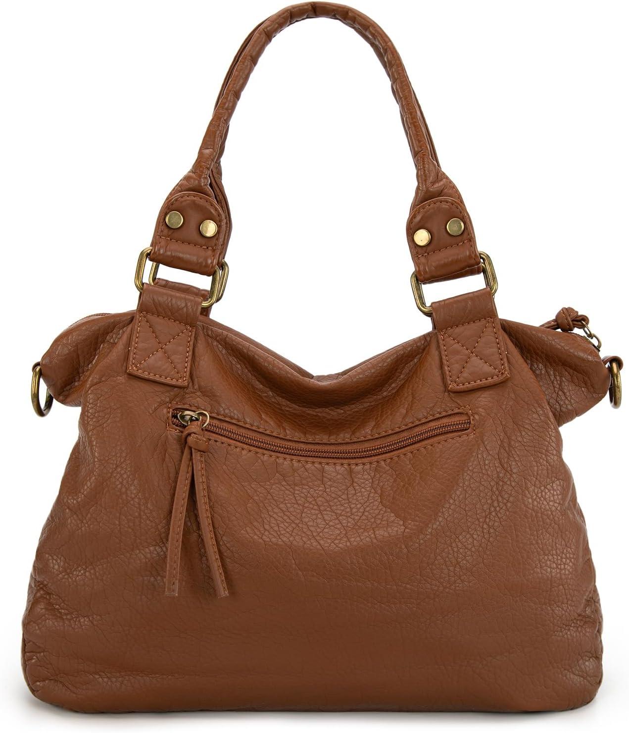 Montana West Washed Leather Hobo Bags for Women Roomy Handbags with Crossbody Strap(581 Brown)