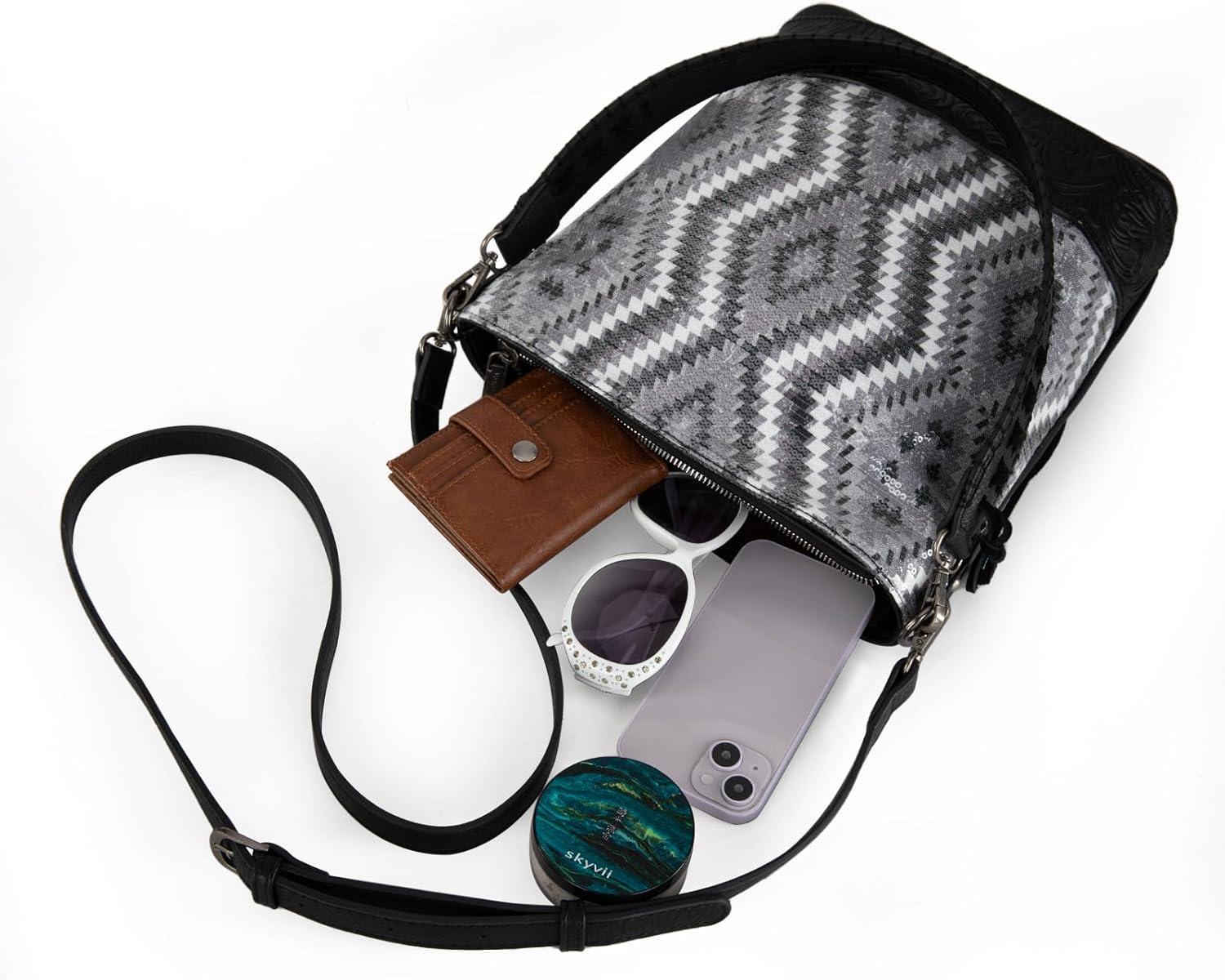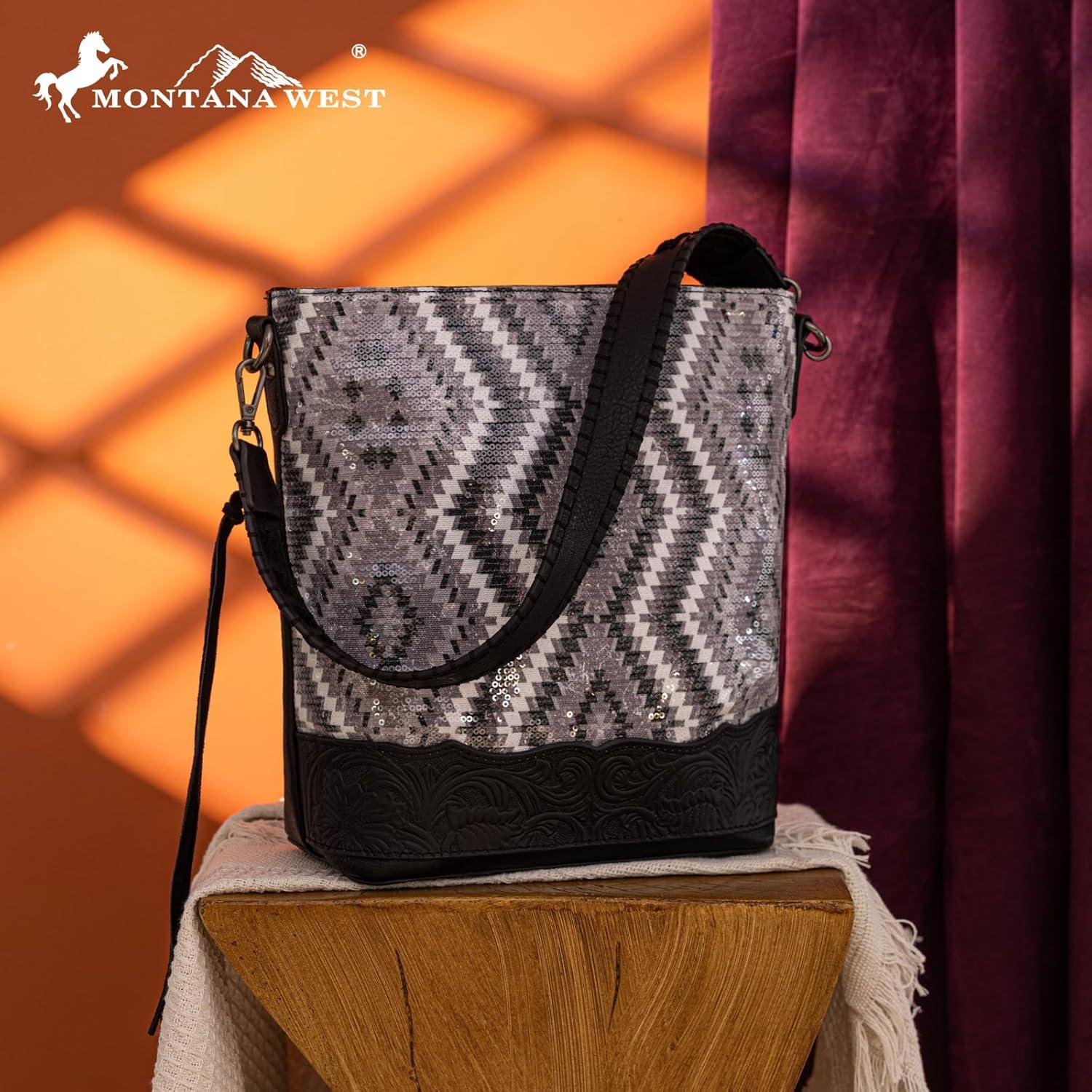 Montana West Western Aztec Tote Bag for Women Country Cowgirl Top Handle Shoulder Bag(Sequined Aztec-black)
