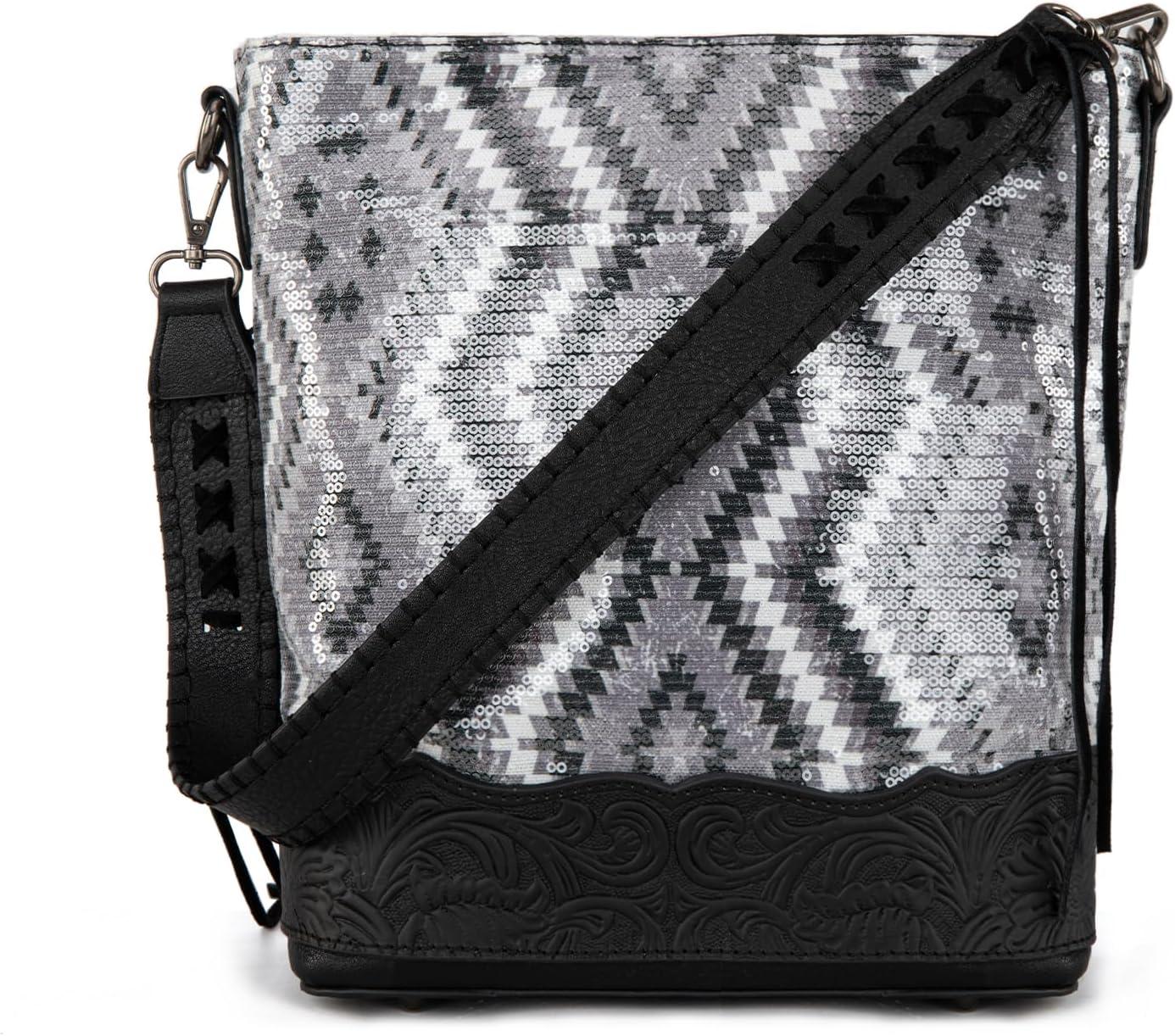 imageMontana West Western Aztec Tote Bag for Women Country Cowgirl Top Handle Shoulder BagSequined Aztecblack
