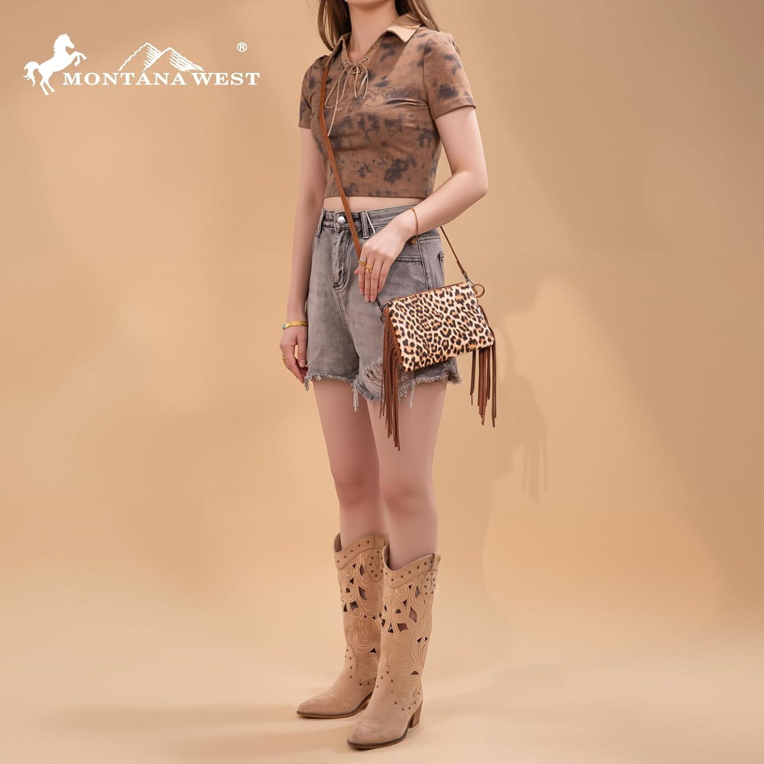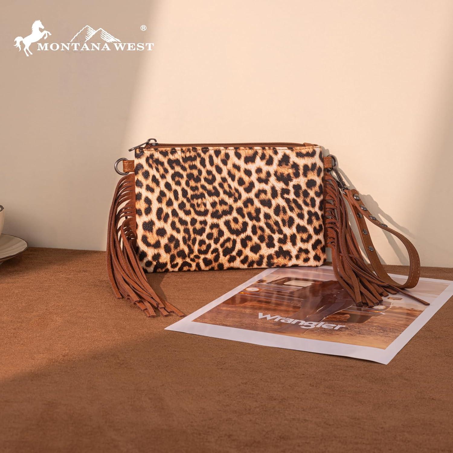 Montana West Western Purse for Women Crossbody Bag Wristlet Clutch Purse(A3 Leopard Brown)