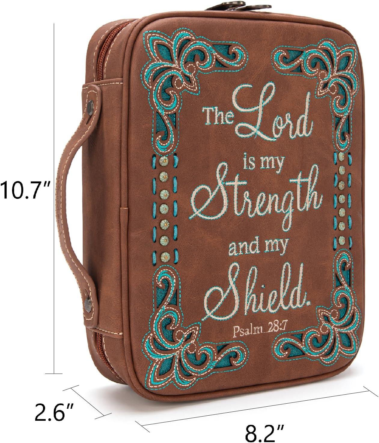 Montana West Western Style Embroidered Bible Covers for Women Men Book Carrying Case Church Bag Outdoor Bible Protective(Coffee Turquoise)