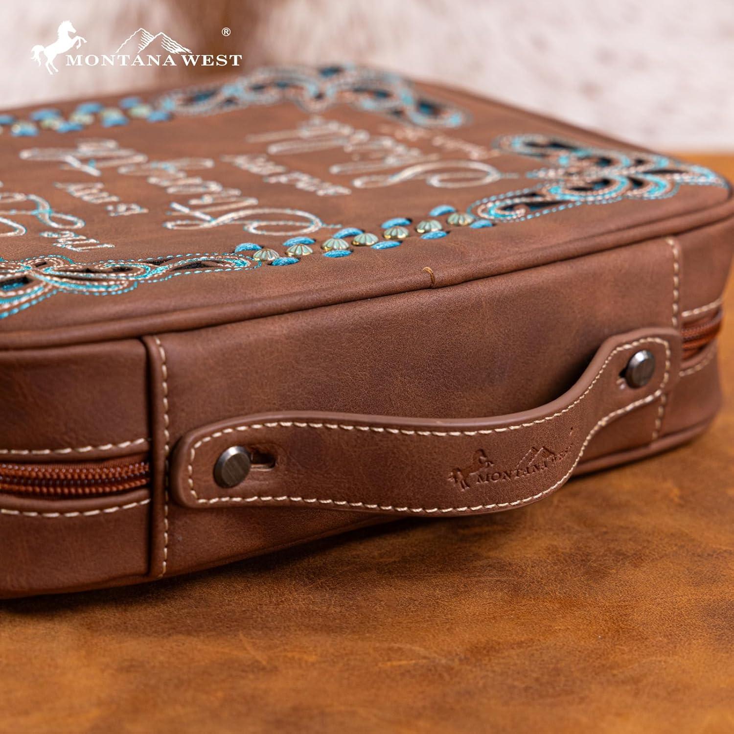 imageMontana West Western Style Embroidered Bible Covers for Women Men Book Carrying Case Church Bag Outdoor Bible ProtectiveBrown Turquoise