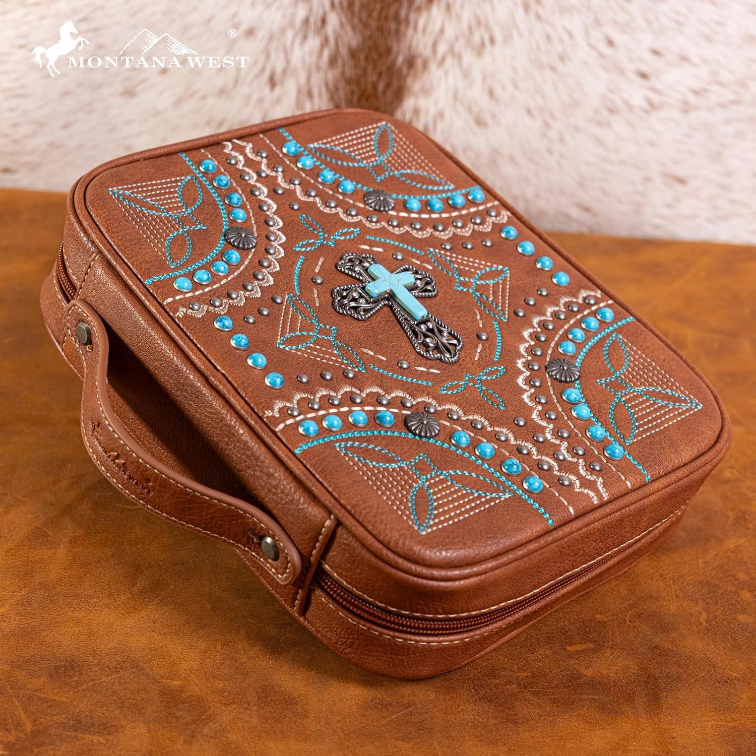 imageMontana West Western Style Embroidered Bible Covers for Women Men Book Carrying Case Church Bag Outdoor Bible ProtectiveCoffee Turquoise