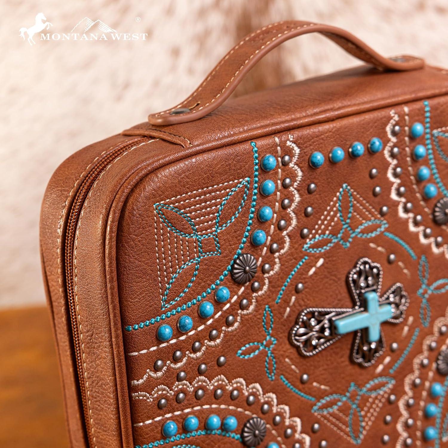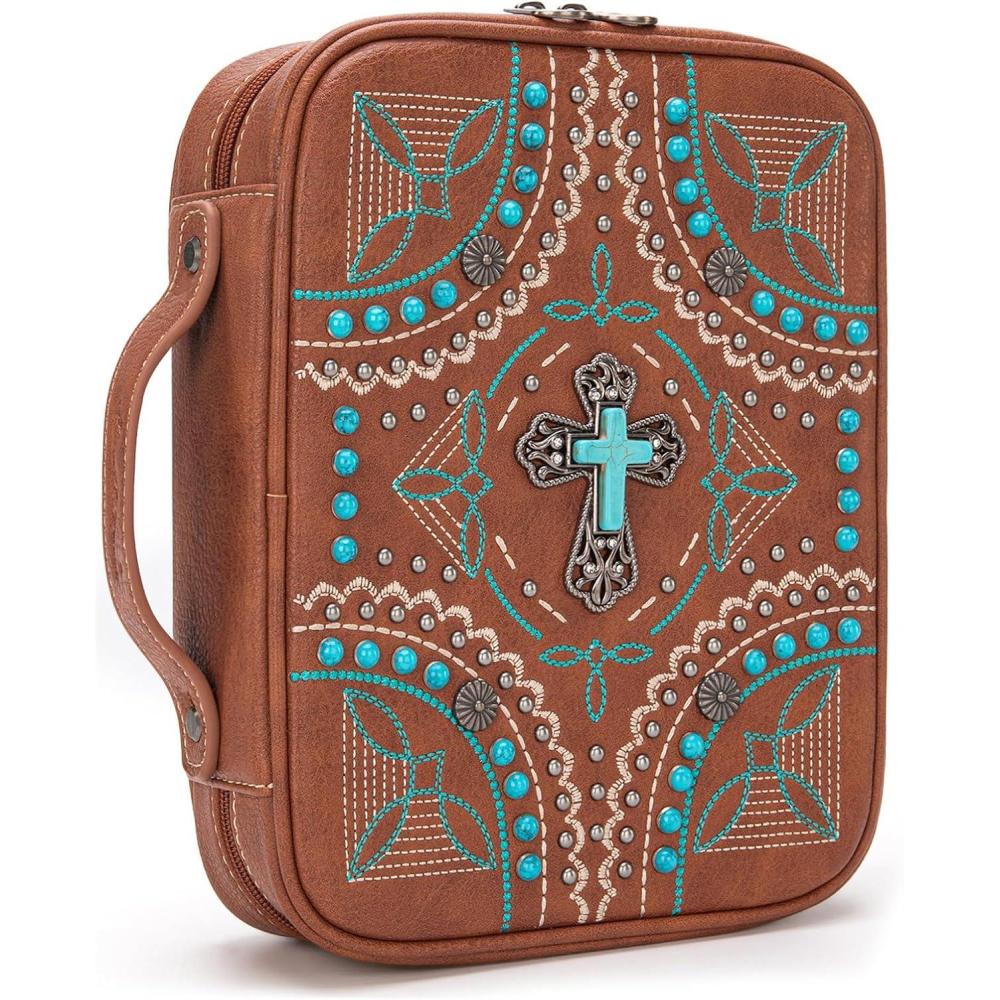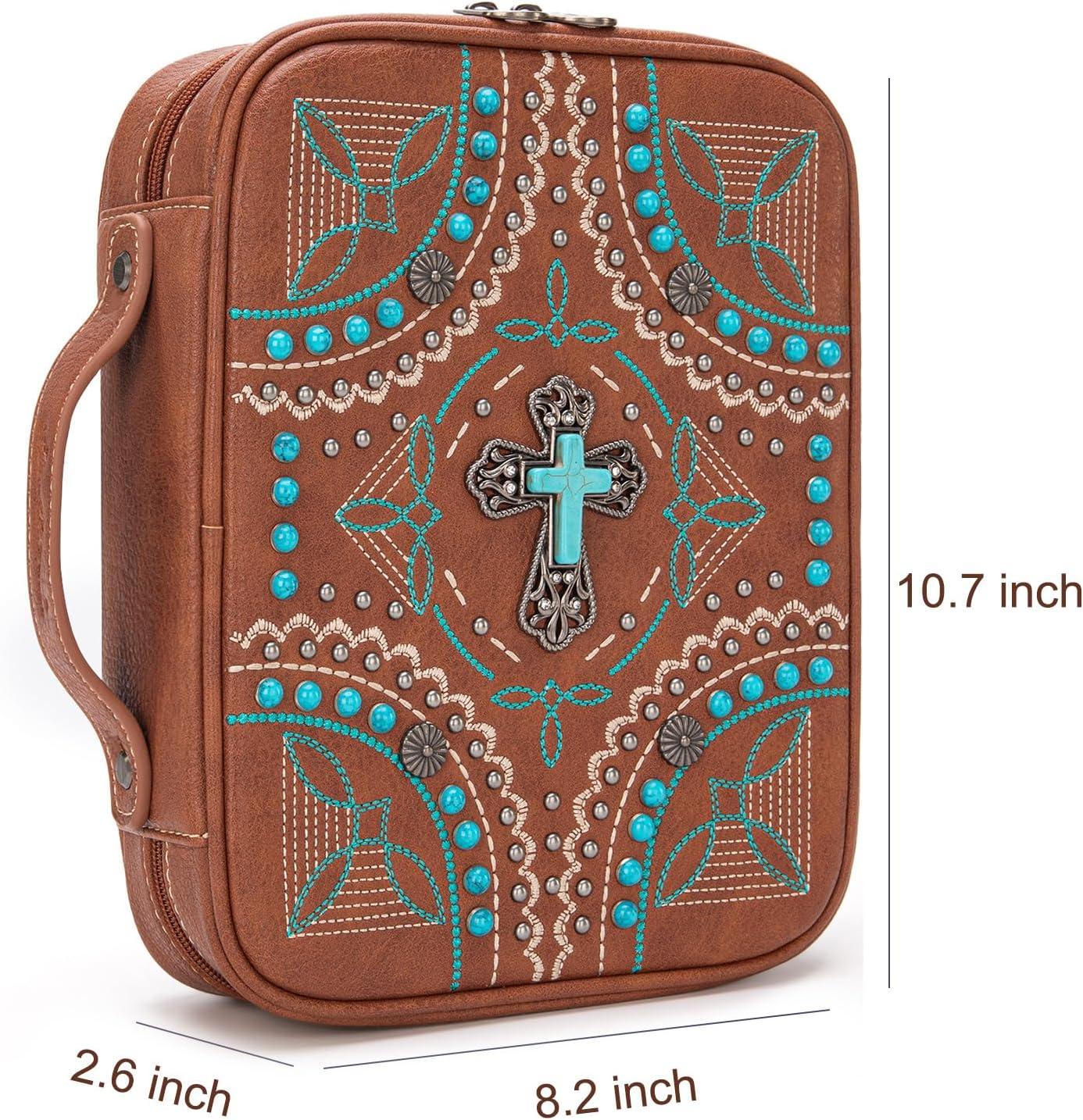 Montana West Western Style Embroidered Bible Covers for Women Men Book Carrying Case Church Bag Outdoor Bible Protective(Coffee Turquoise)