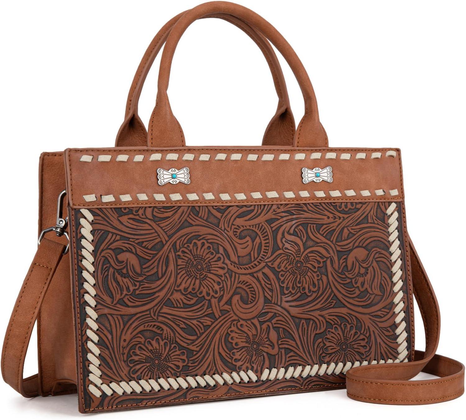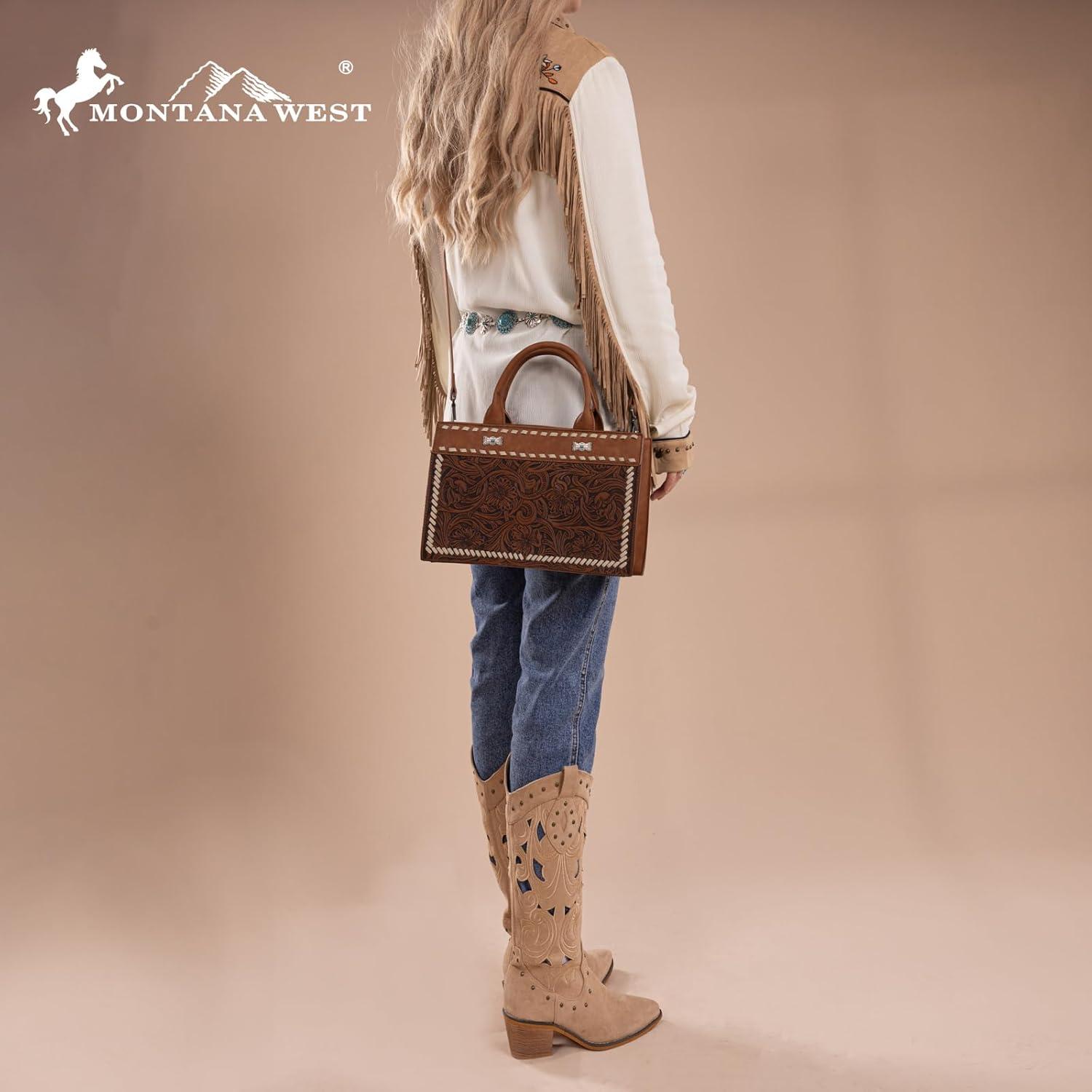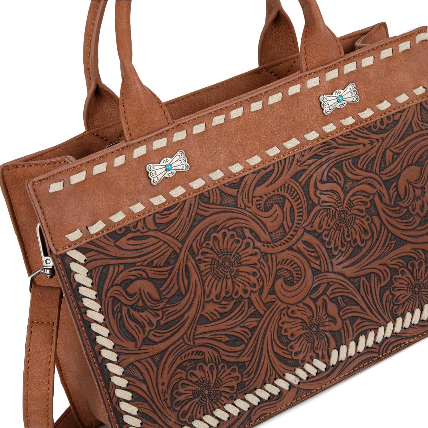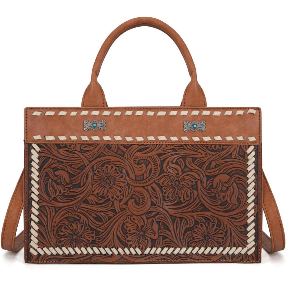 imageMontana West Western Tooling Handbags Vintage Prints and Whipstitch CraftsmanshipStitching Brown
