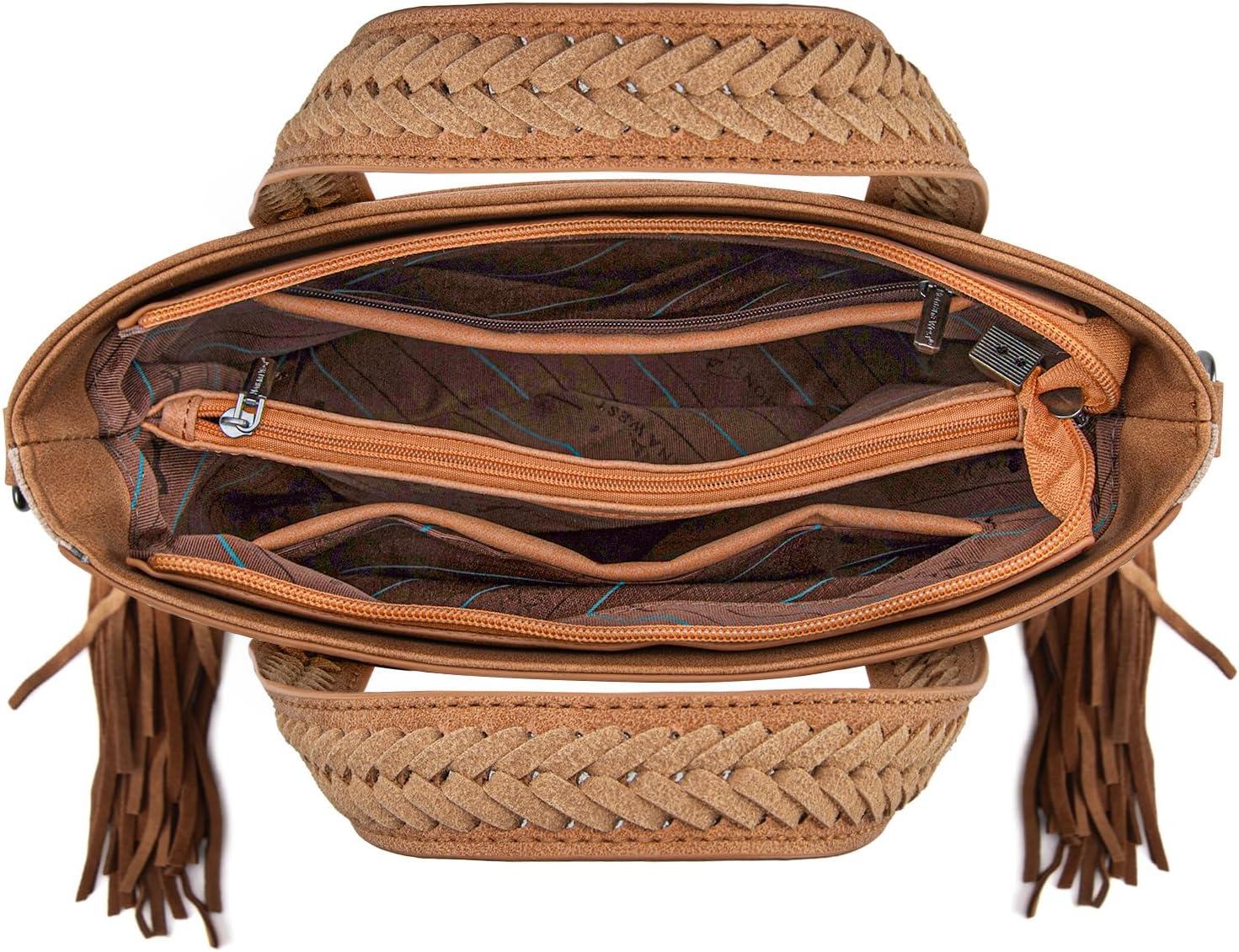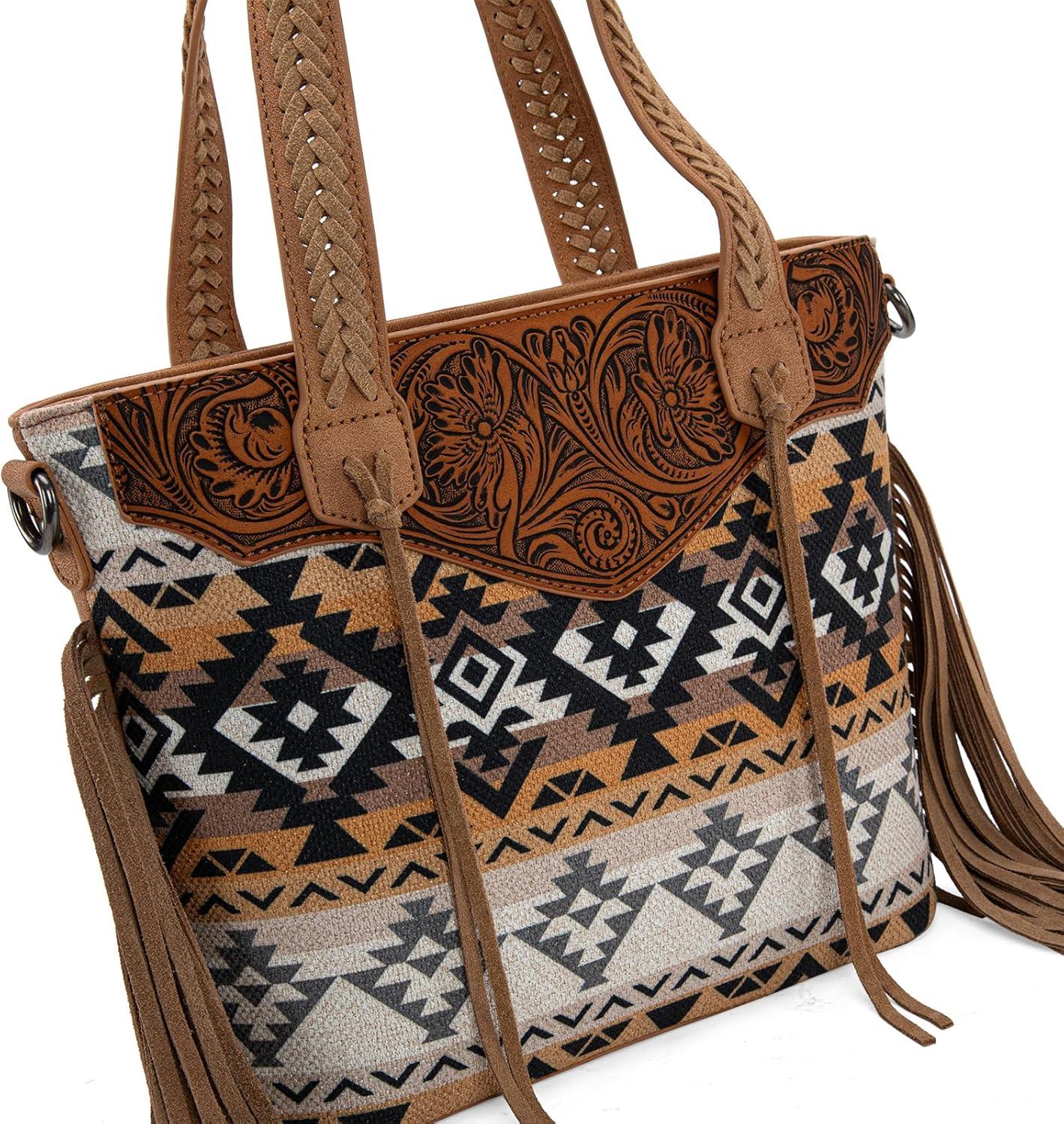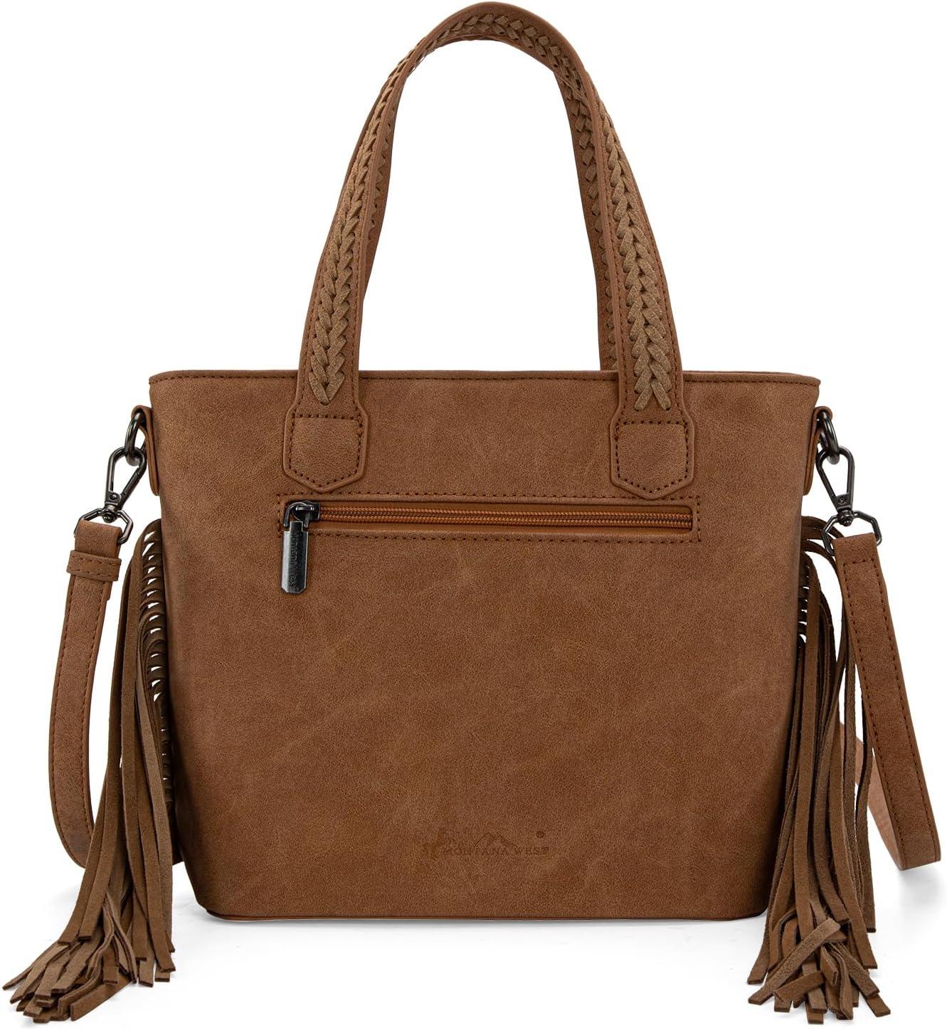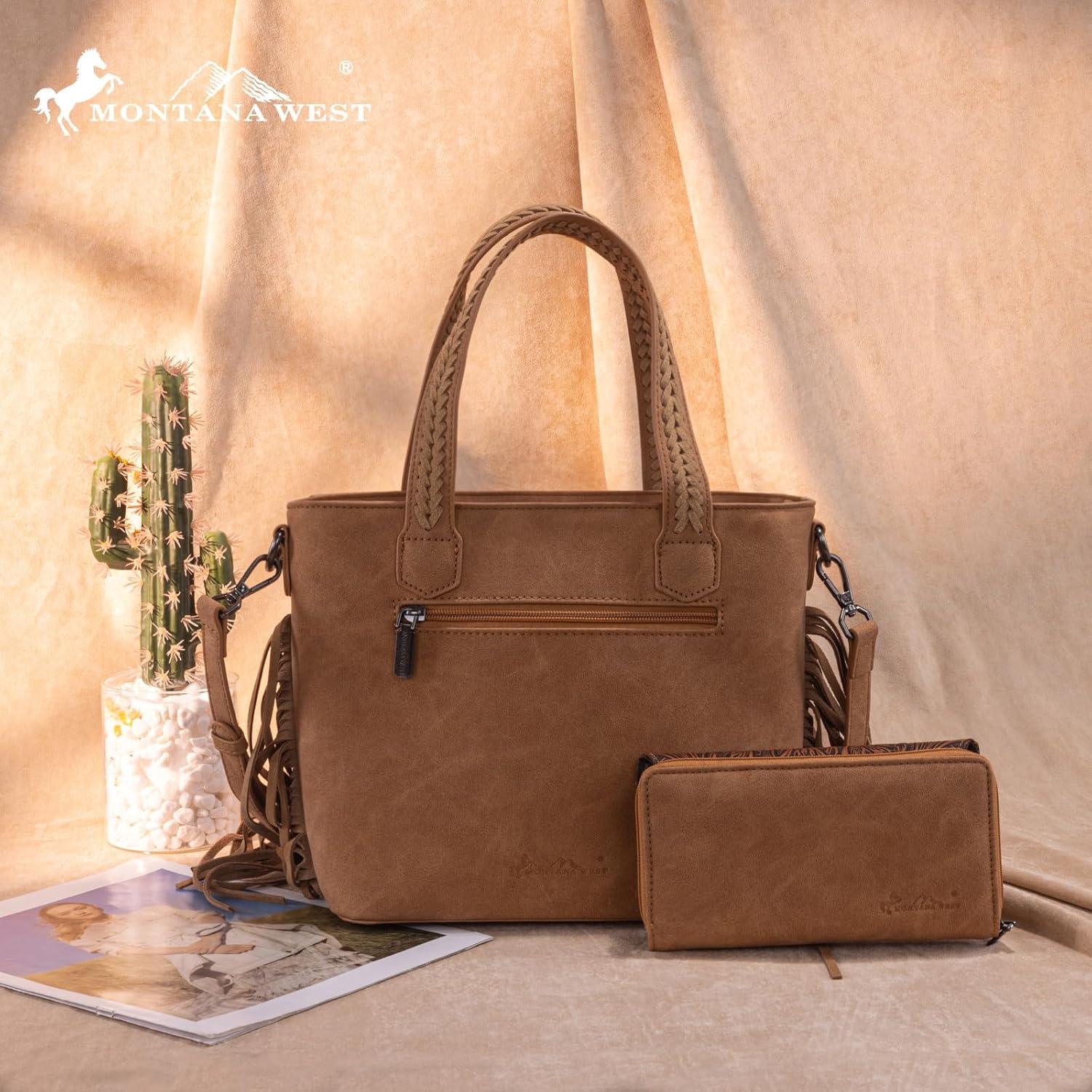 Montana West Western Tote Bag for Women Tooled Shoulder Purse with Wallet 2Pcs Set(Tan)