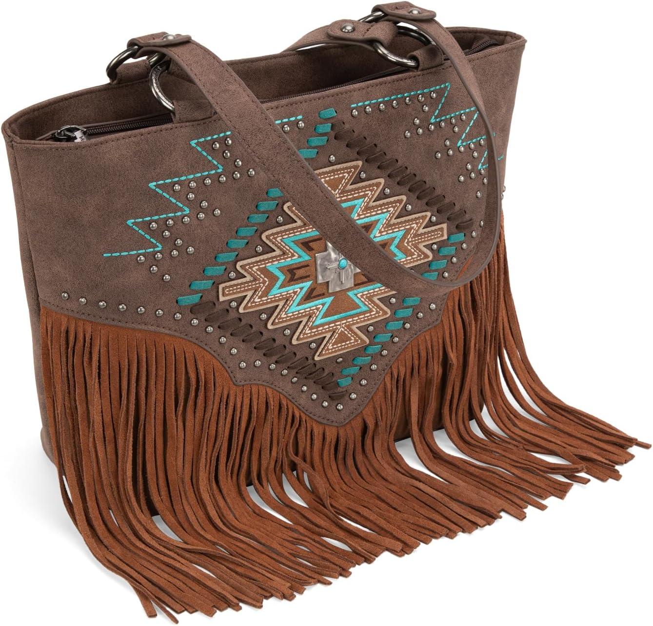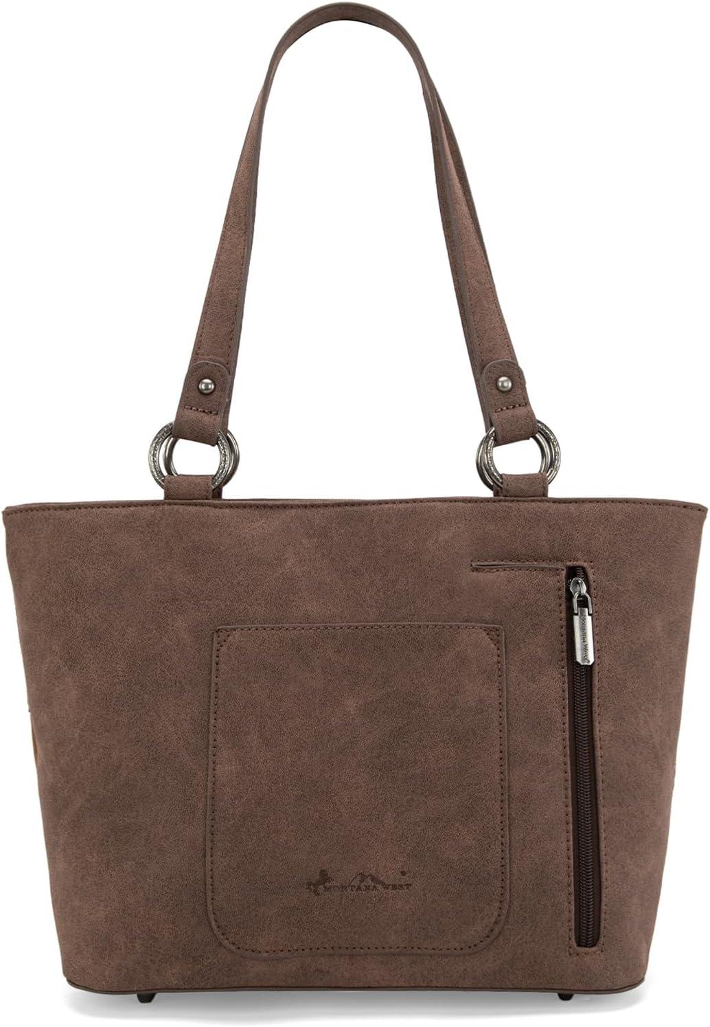 imageMontana West Western Tote Bag for Women Tooled Shoulder Purse with Wallet 2Pcs SetXlarge Brown