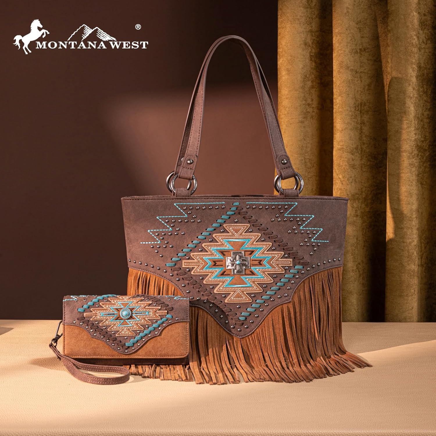 Montana West Western Tote Bag for Women Tooled Shoulder Purse with Wallet 2Pcs Set(X-large Brown)
