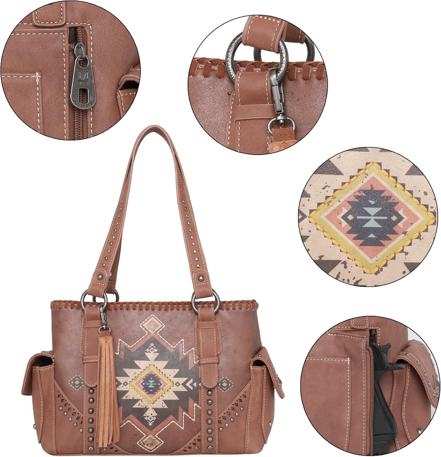 imageMontana West Womens Shoulder Handbags Hand Bags Purses for Women Leather Tote with Wallet Aztec Collection MW1032G8086BRW