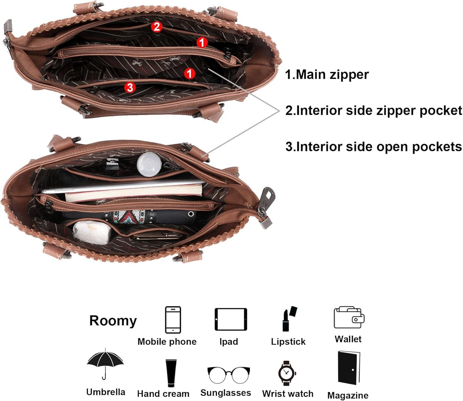 imageMontana West Genuine Leather Purses for Women WesternWhipstitch Tote Bag for Ladies Vintage Top Handle Bag