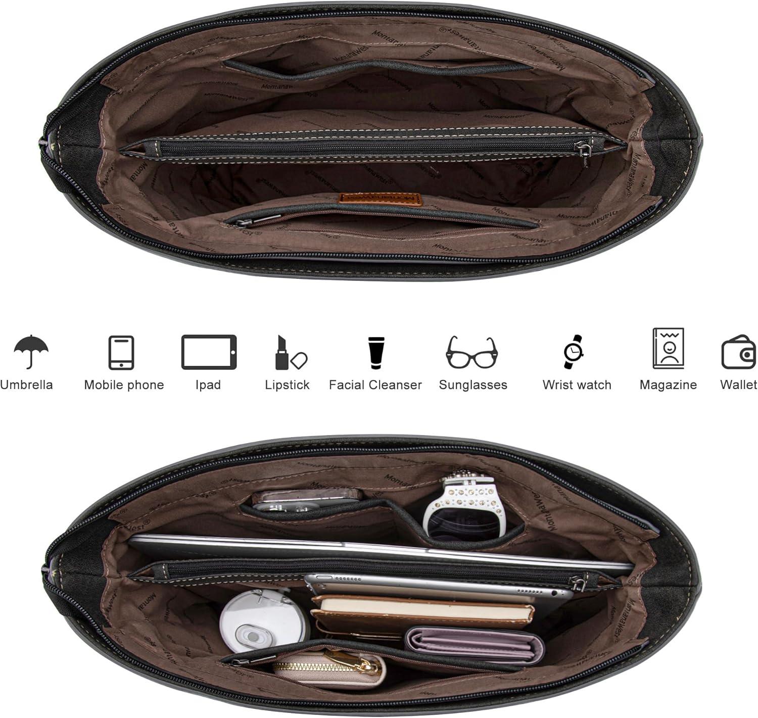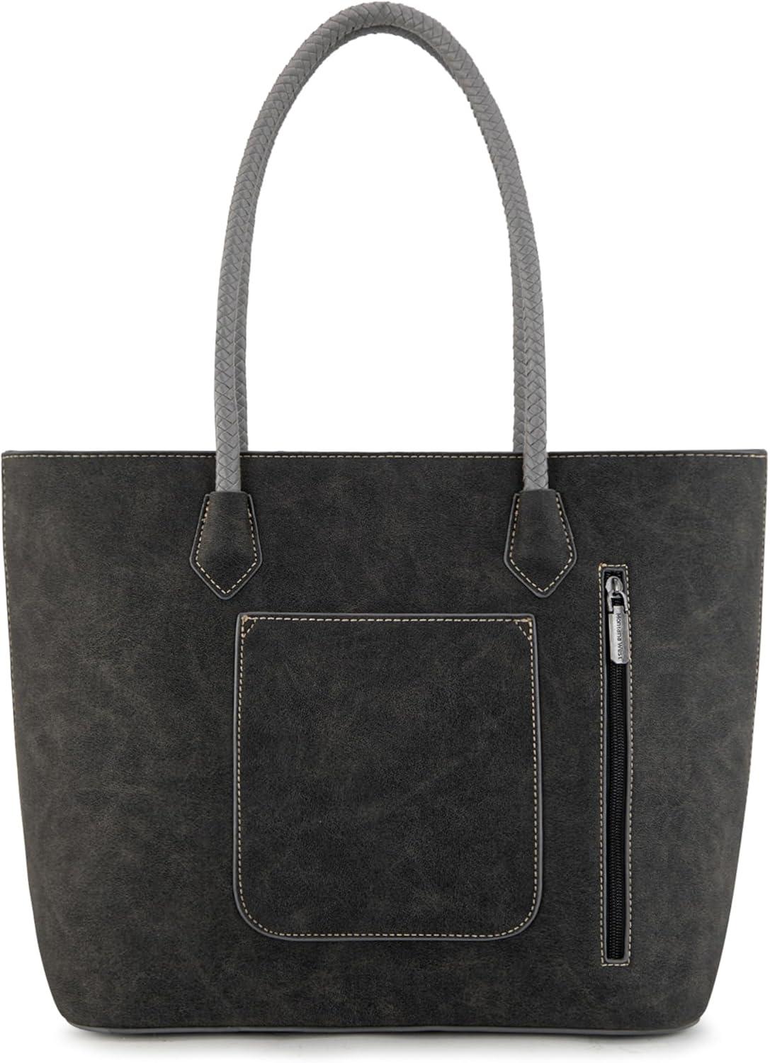 imageMontana West Woven Tote Bags for Women Purses and Handbags with Concealed Carry Back Zipper PocketWoven Black