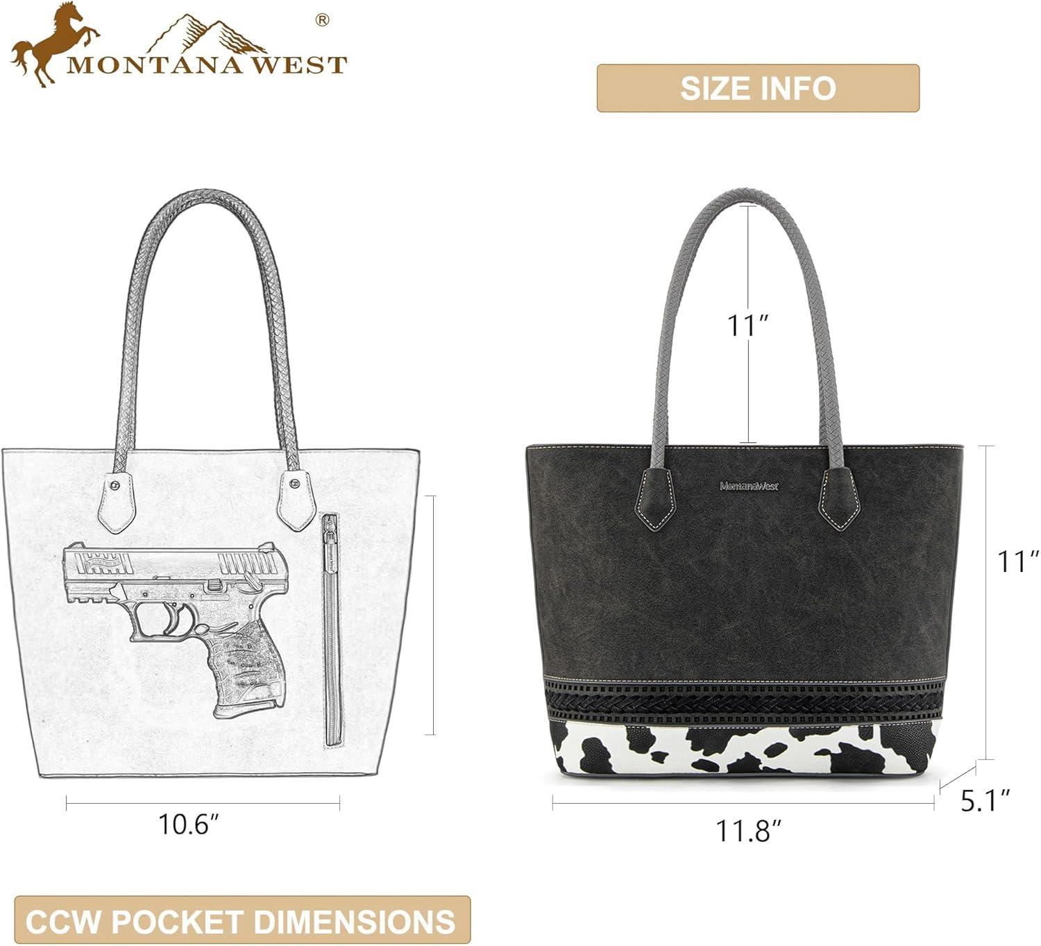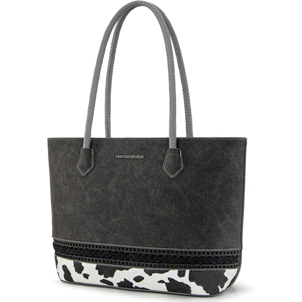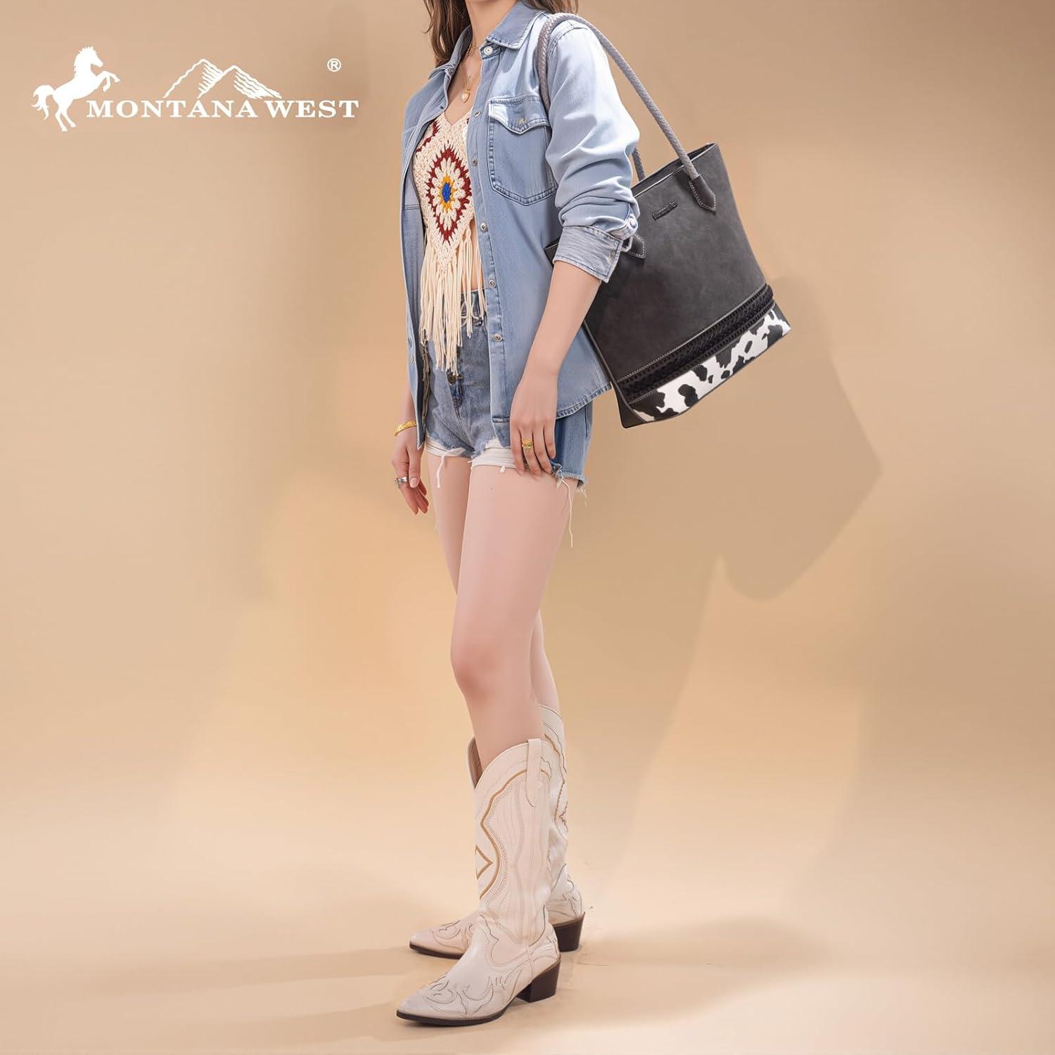 Get the Montana West Woven Tote Bags for Women Purses and Handbags with Concealed Carry Back Zipper Pocket(Cow Print Black) you want at a discounted price during our markdown sale event.