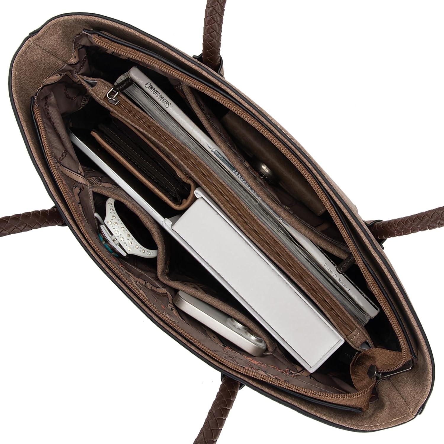 Montana West Woven Tote Bags for Women Purses and Handbags with Concealed Carry Back Zipper Pocket(Distressed Brown)