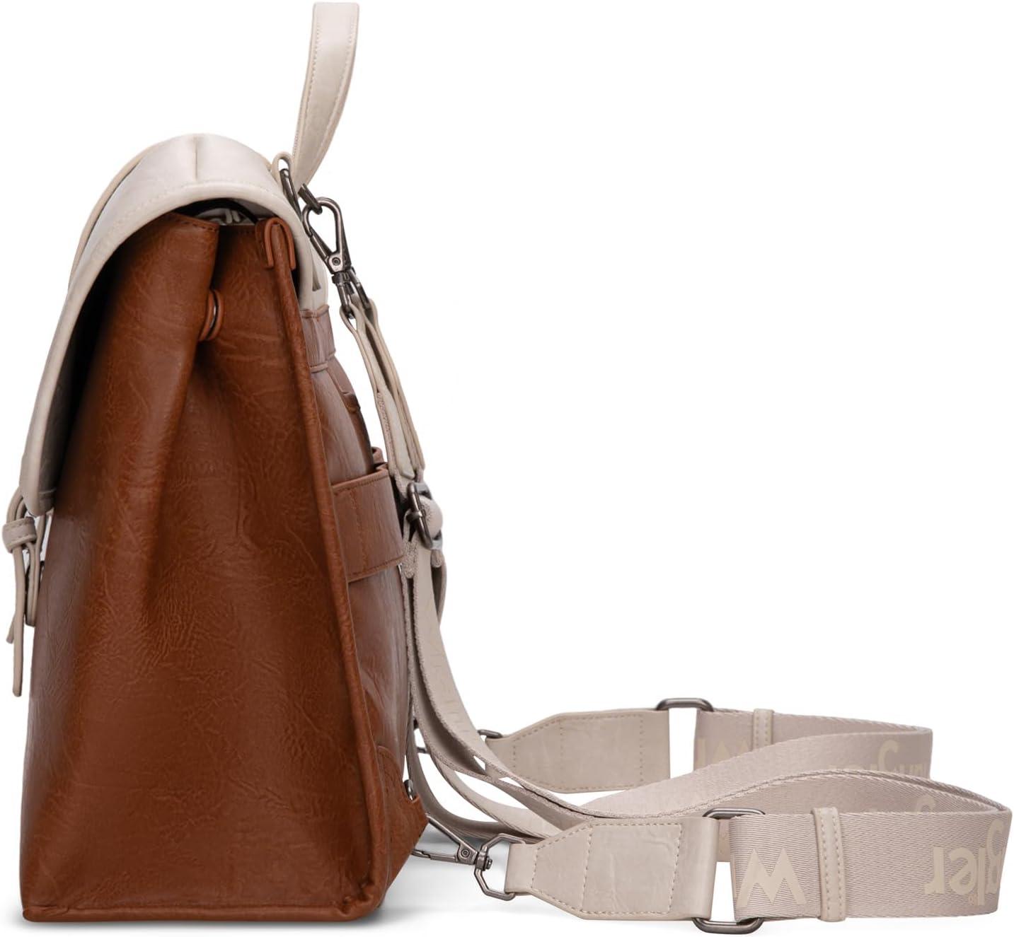 Montana West Wrangler 15.6 Inch Laptop Backpack Convertible Crossbody Bags Top-handle Handbags for Business/Travel/Office(Beige & Brown)