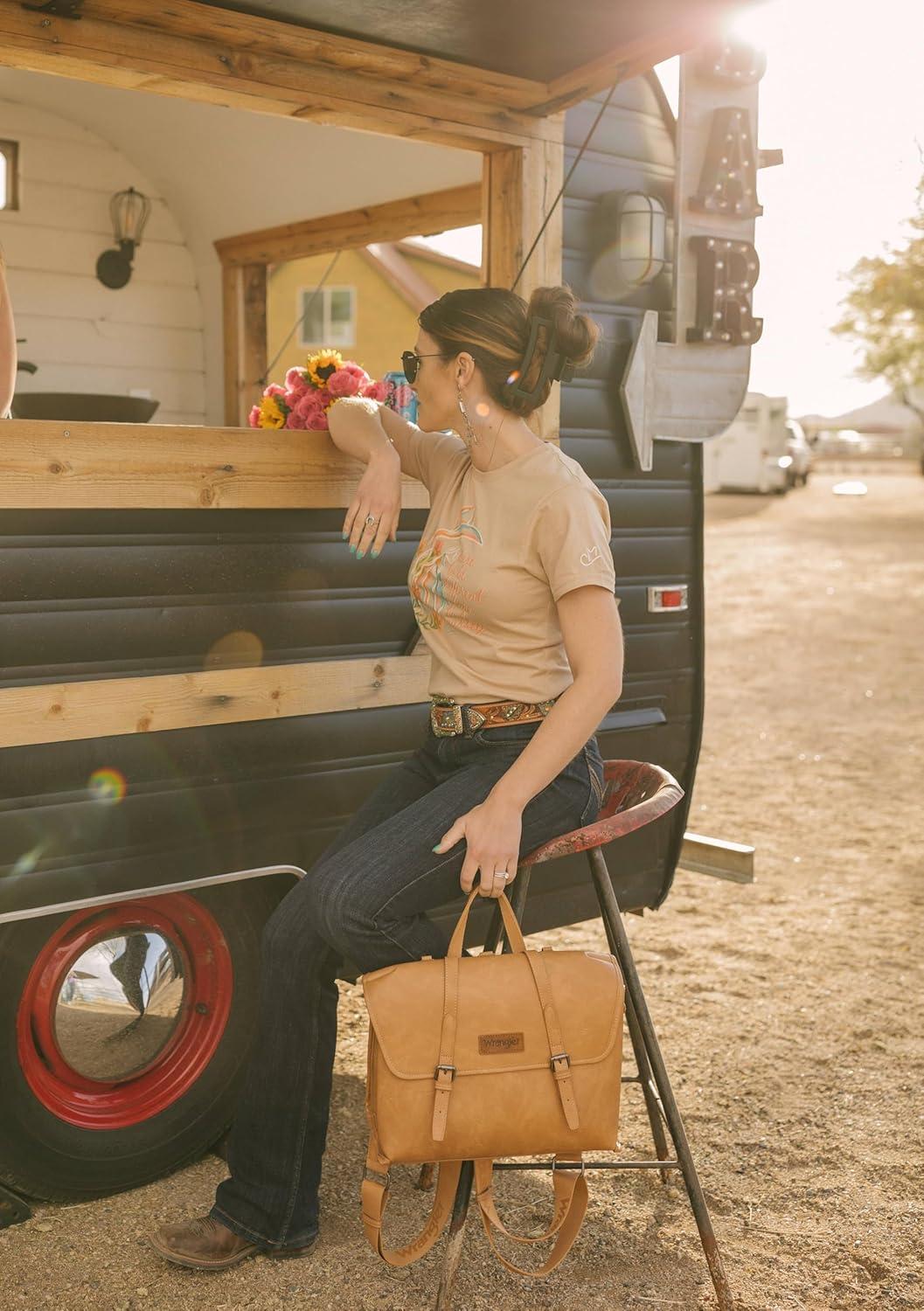 imageMontana West Wrangler 156 Inch Laptop Backpack Convertible Crossbody Bags Tophandle Handbags for BusinessTravelOfficeLight Brown