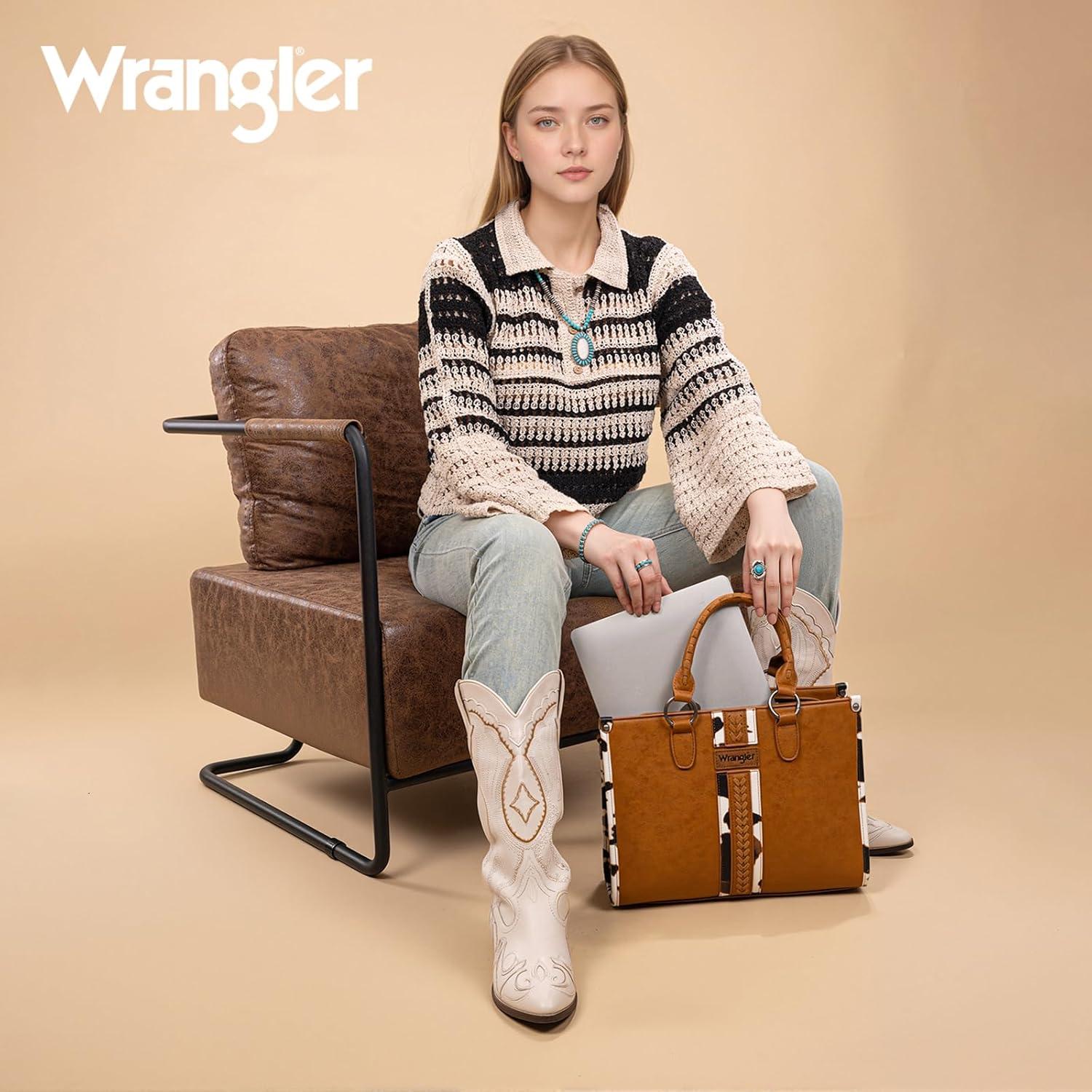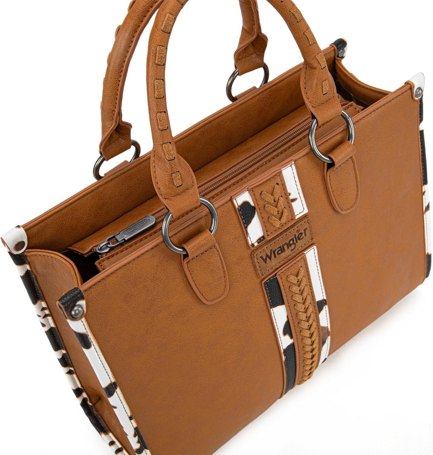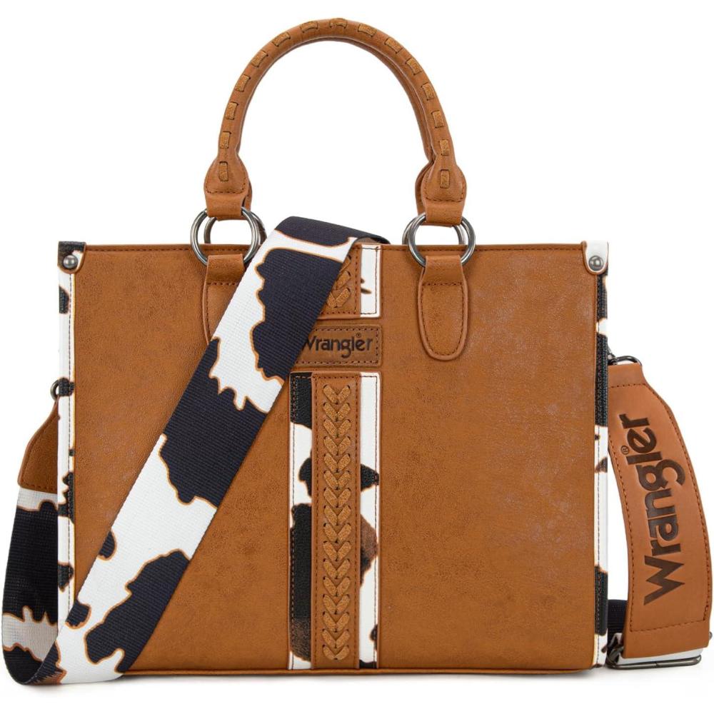 imageMontana West Wrangler Cow Print Tote Bag for Women Western Purse Boho Top Handle Satchel HandbagCow Brown