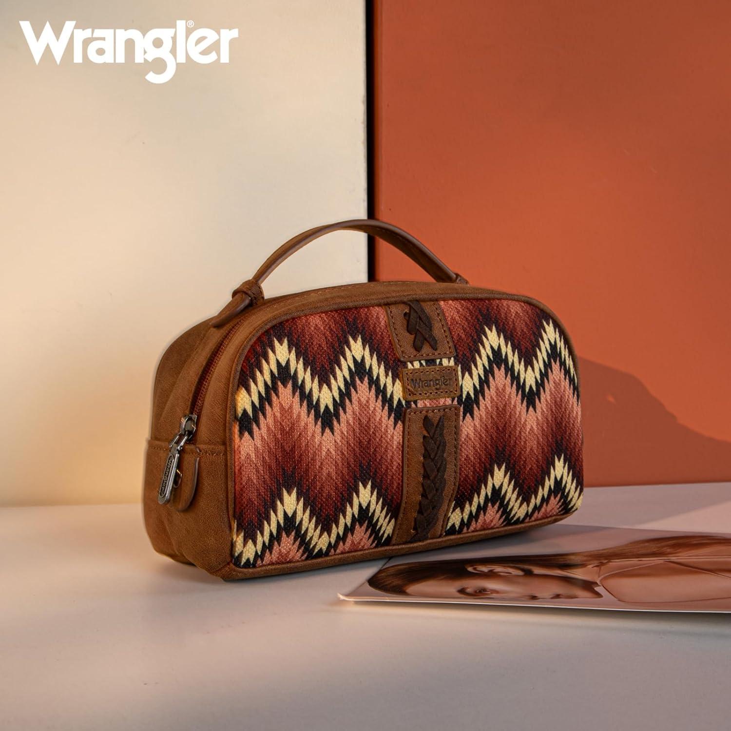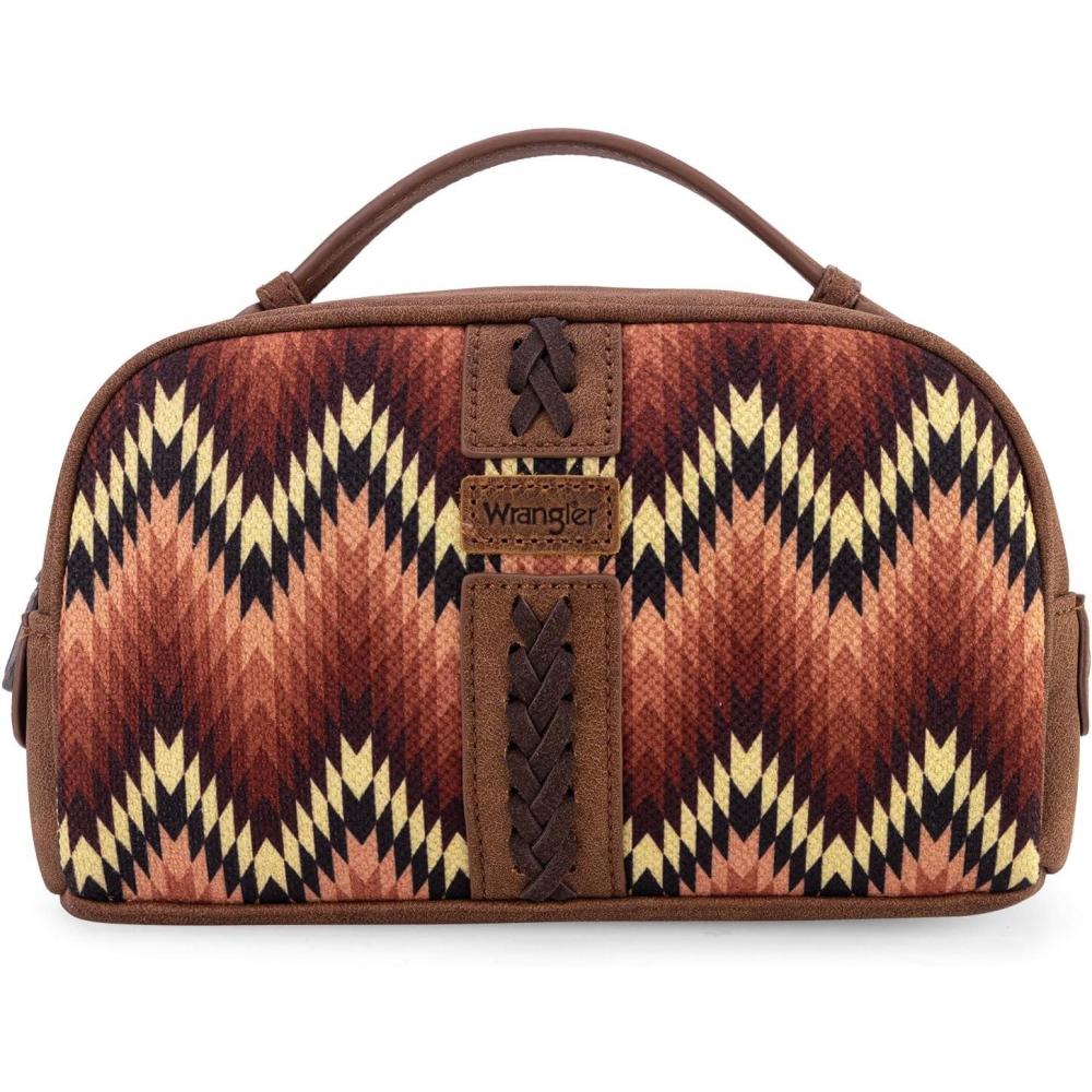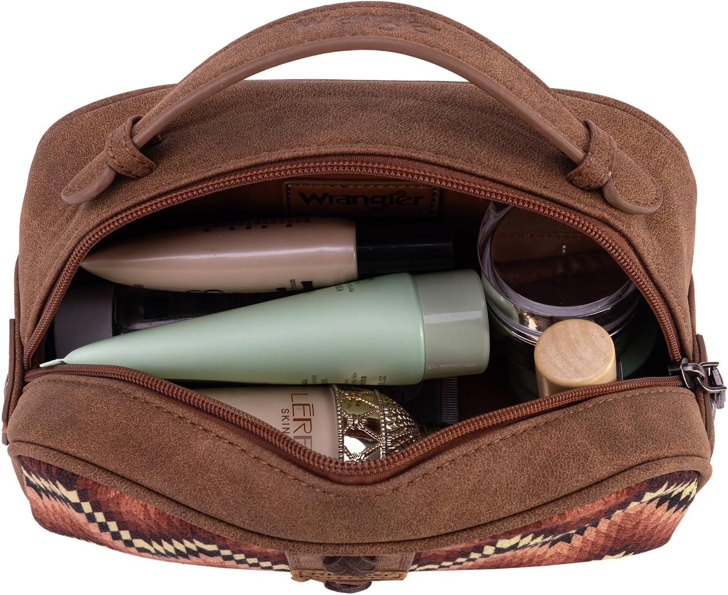 imageMontana West Wrangler Makeup Bag for Women Small Cosmetic Toiletry Bags Western Make Up Pouch Durable Cute Travel Purse Dark PinkAztecBrown