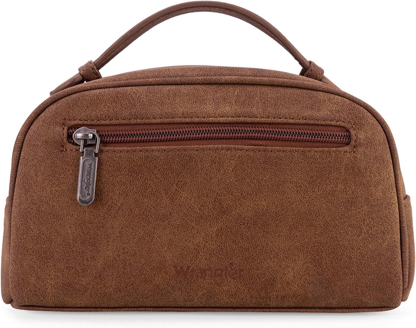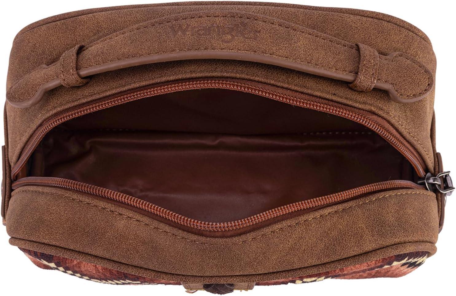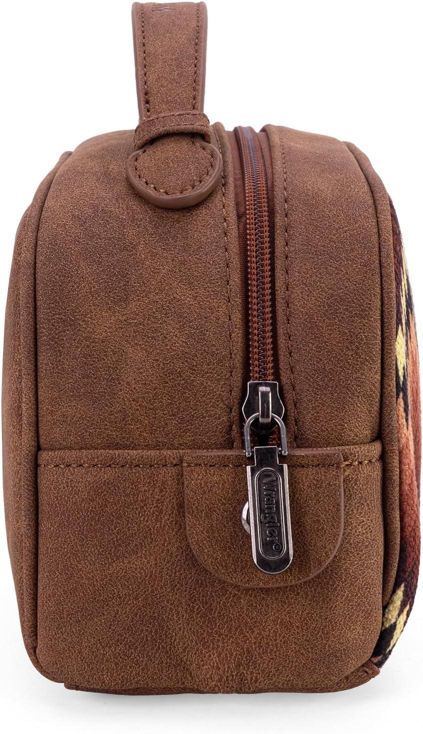 imageMontana West Wrangler Makeup Bag for Women Small Cosmetic Toiletry Bags Western Make Up Pouch Durable Cute Travel Purse Dark PinkAztecBrown