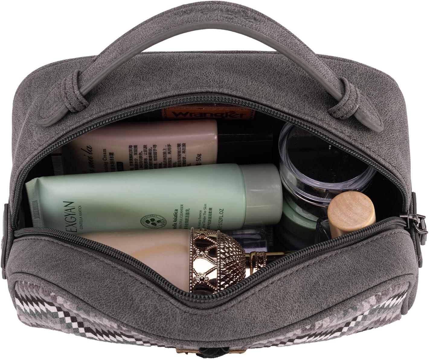 Montana West Wrangler Makeup Bag for Women Small Cosmetic Toiletry Bags Western Make Up Pouch Durable Cute Travel Purse, Dark Pink(Aztec-Gray)