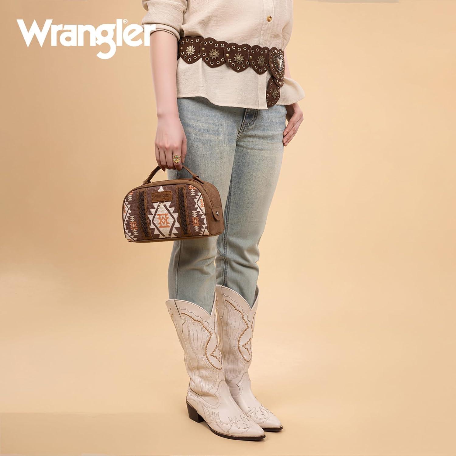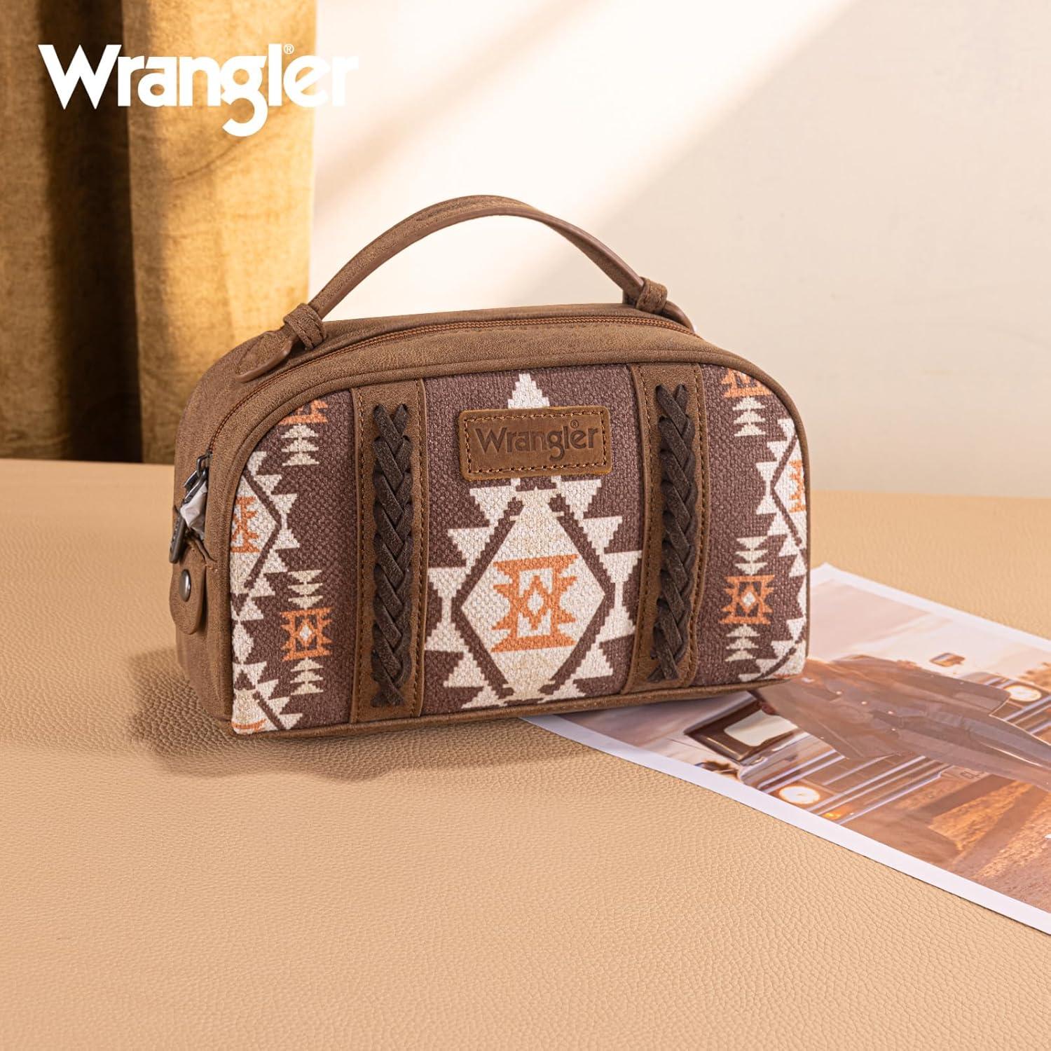 Stylish Western Aztec: Featuring a bandana print and embroidered Wrangler logo, this bag adds a fun western touch to your travel gear.