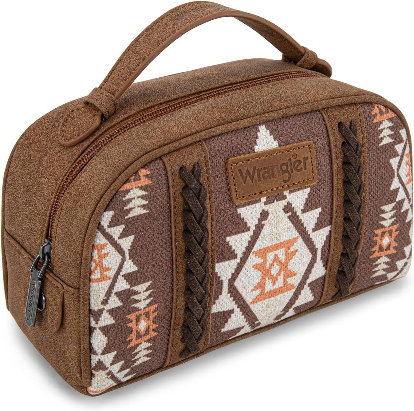 Montana West Wrangler Makeup Bag for Women Small Cosmetic Toiletry Bags Western Make Up Pouch Durable Cute Travel Purse, Dark Pink(D-coffee)
