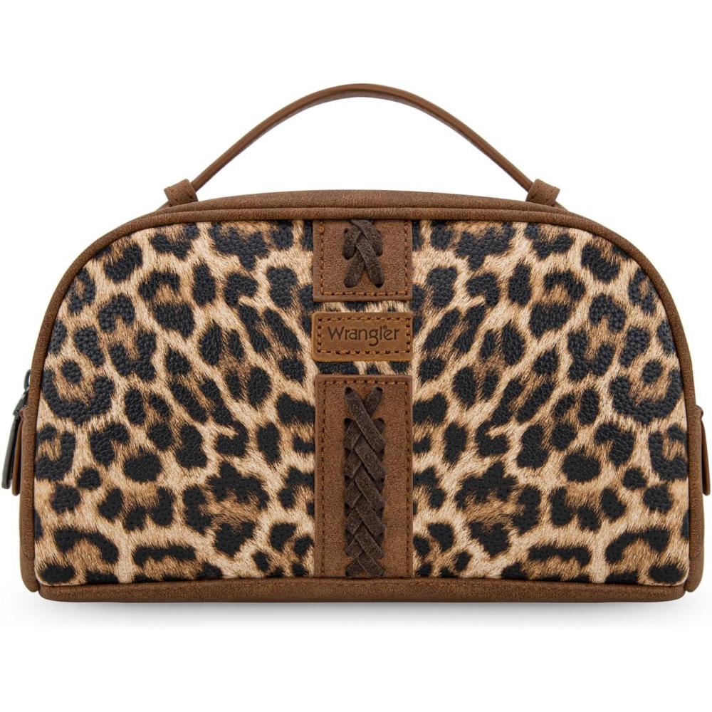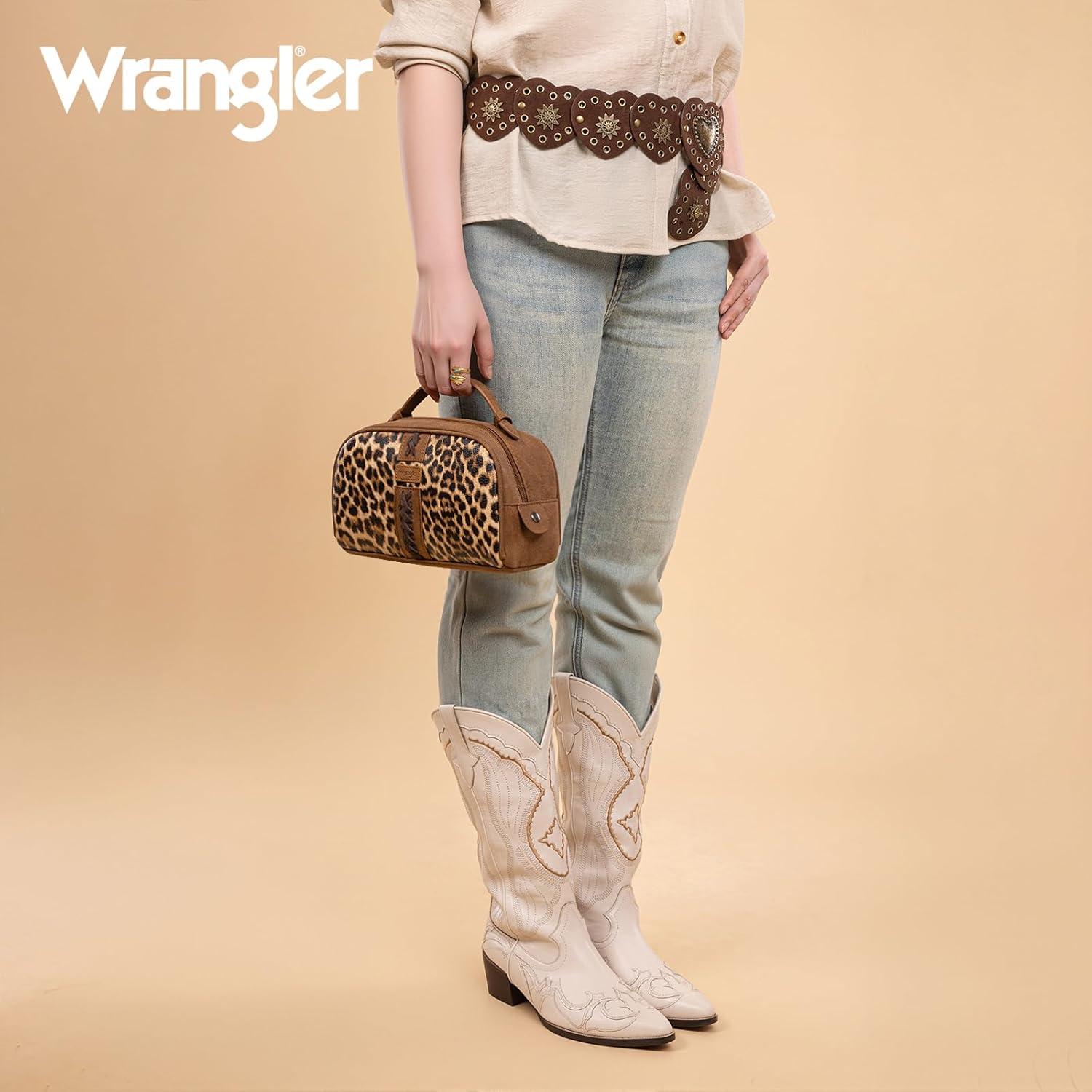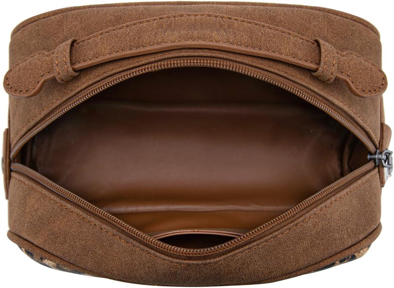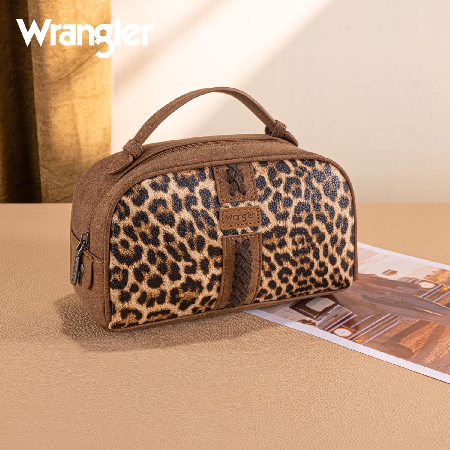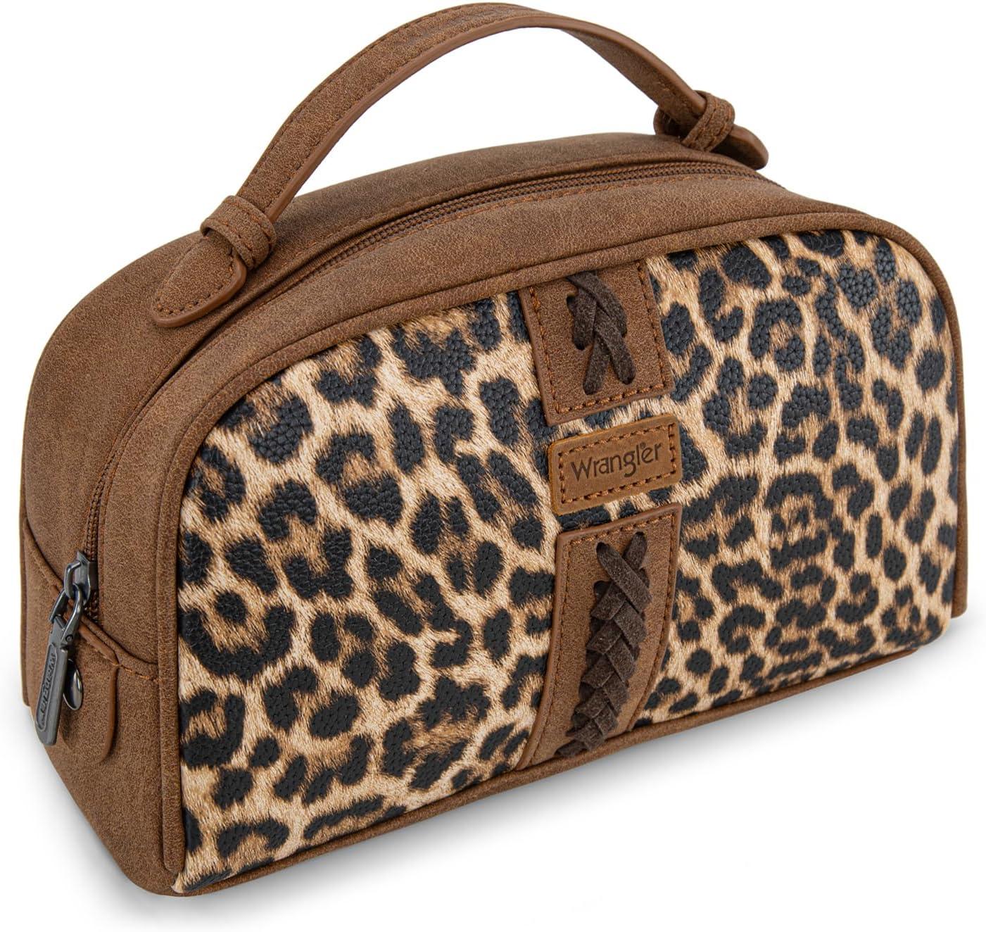 Montana West Wrangler Makeup Bag for Women Small Cosmetic Toiletry Bags Western Make Up Pouch Durable Cute Travel Purse, Dark Pink(S-leopard brown)