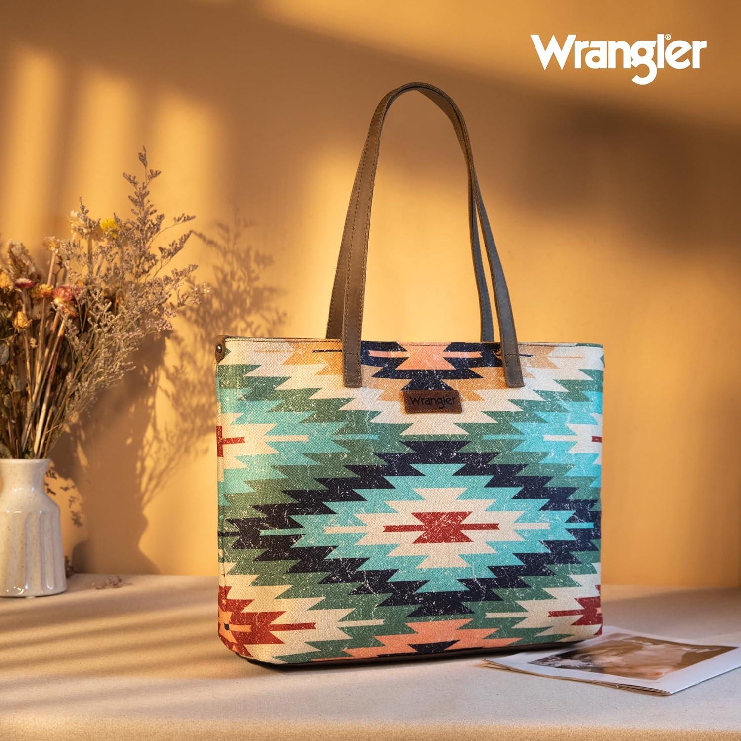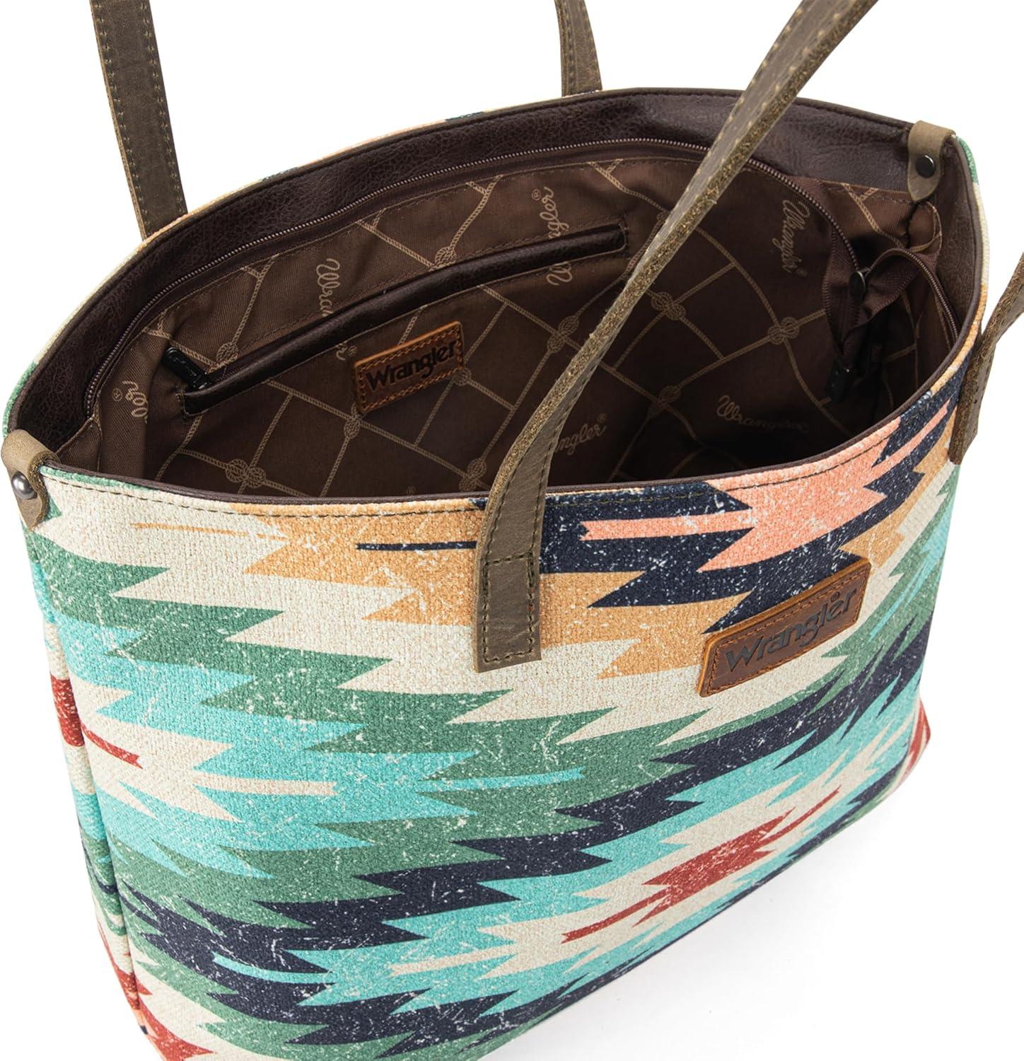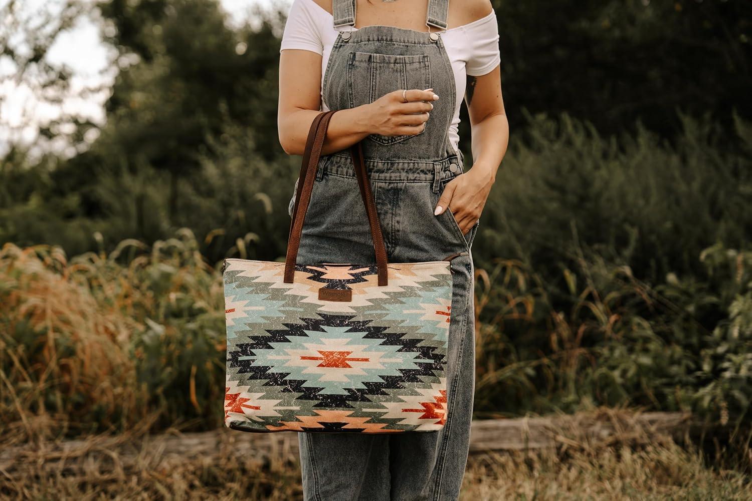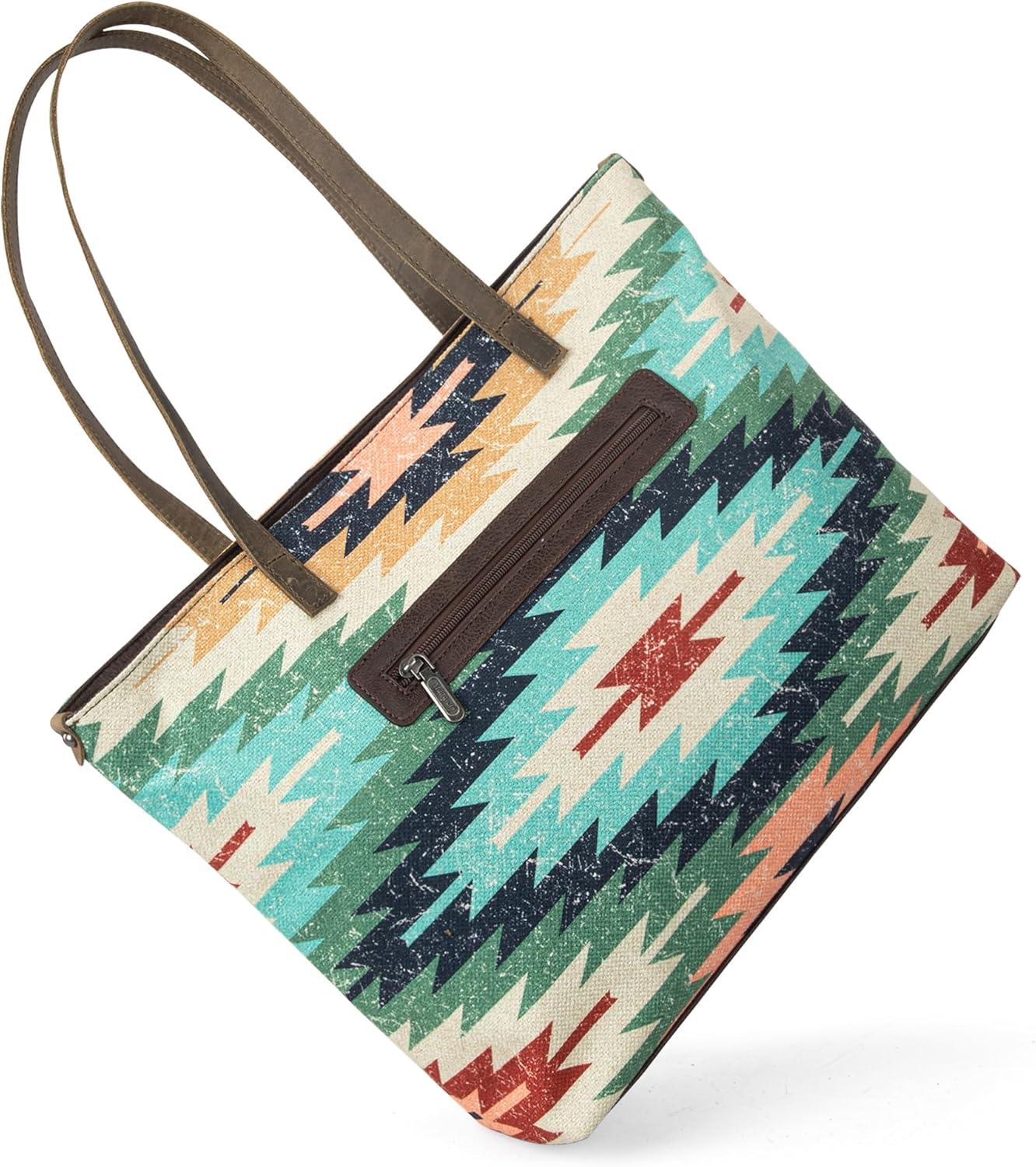 imageMontana West Wrangler Tote Bag for Women Canvas Shoulder Handbag Aztec PurseMultiple Green