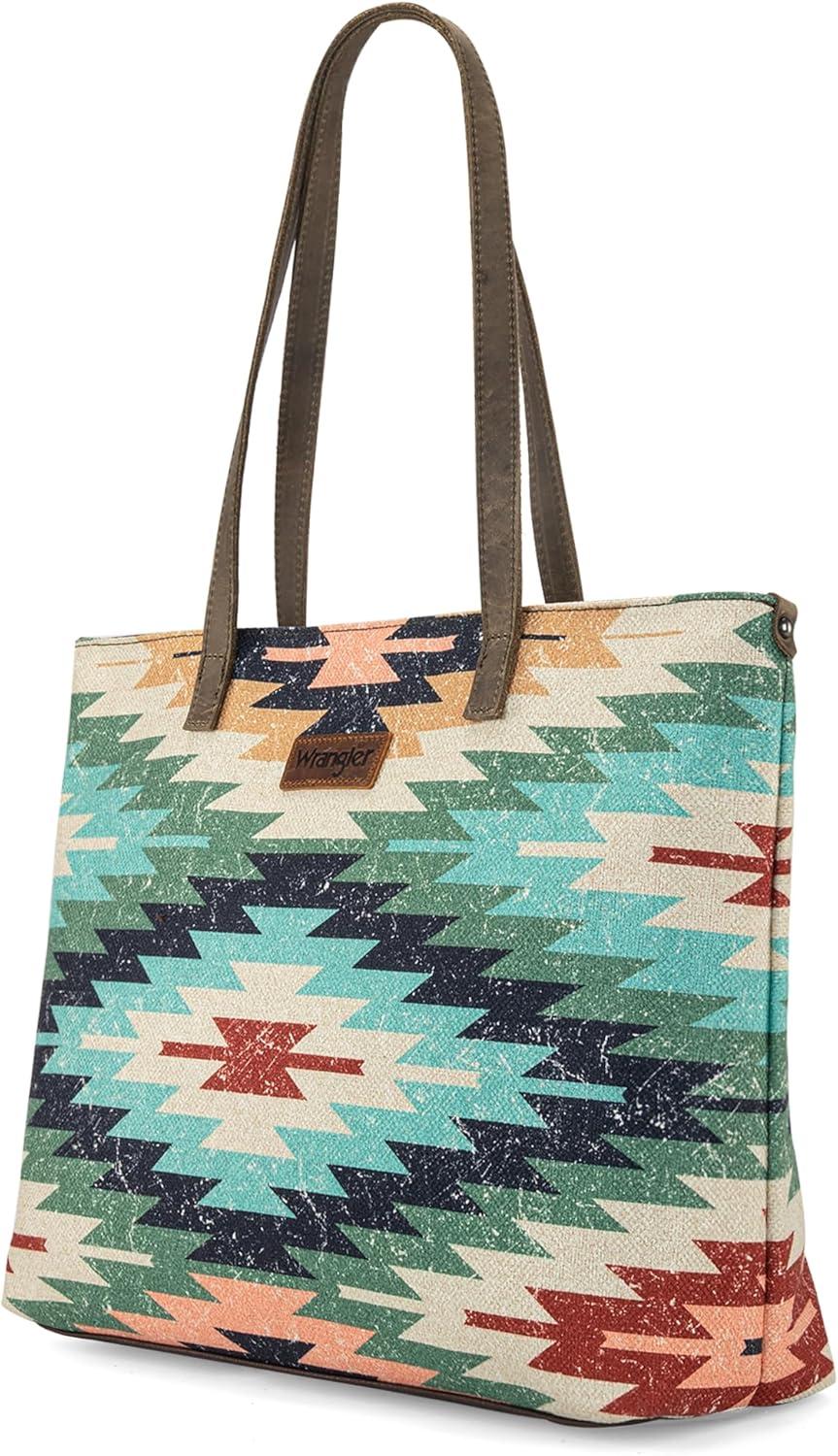 Montana West Wrangler Tote Bag for Women Canvas Shoulder Handbag Aztec Purse(Multiple Green)