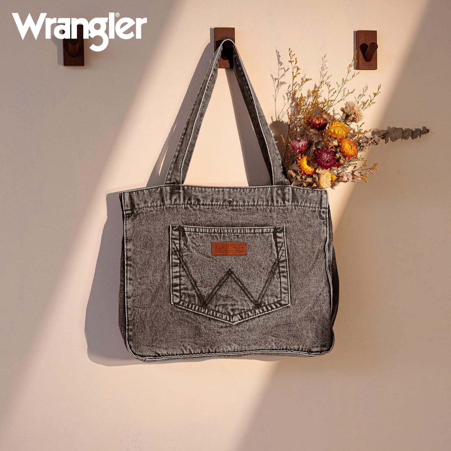 imageMontana West Wrangler Tote Bag for Women Large Denim Purses for Work TravelGrey