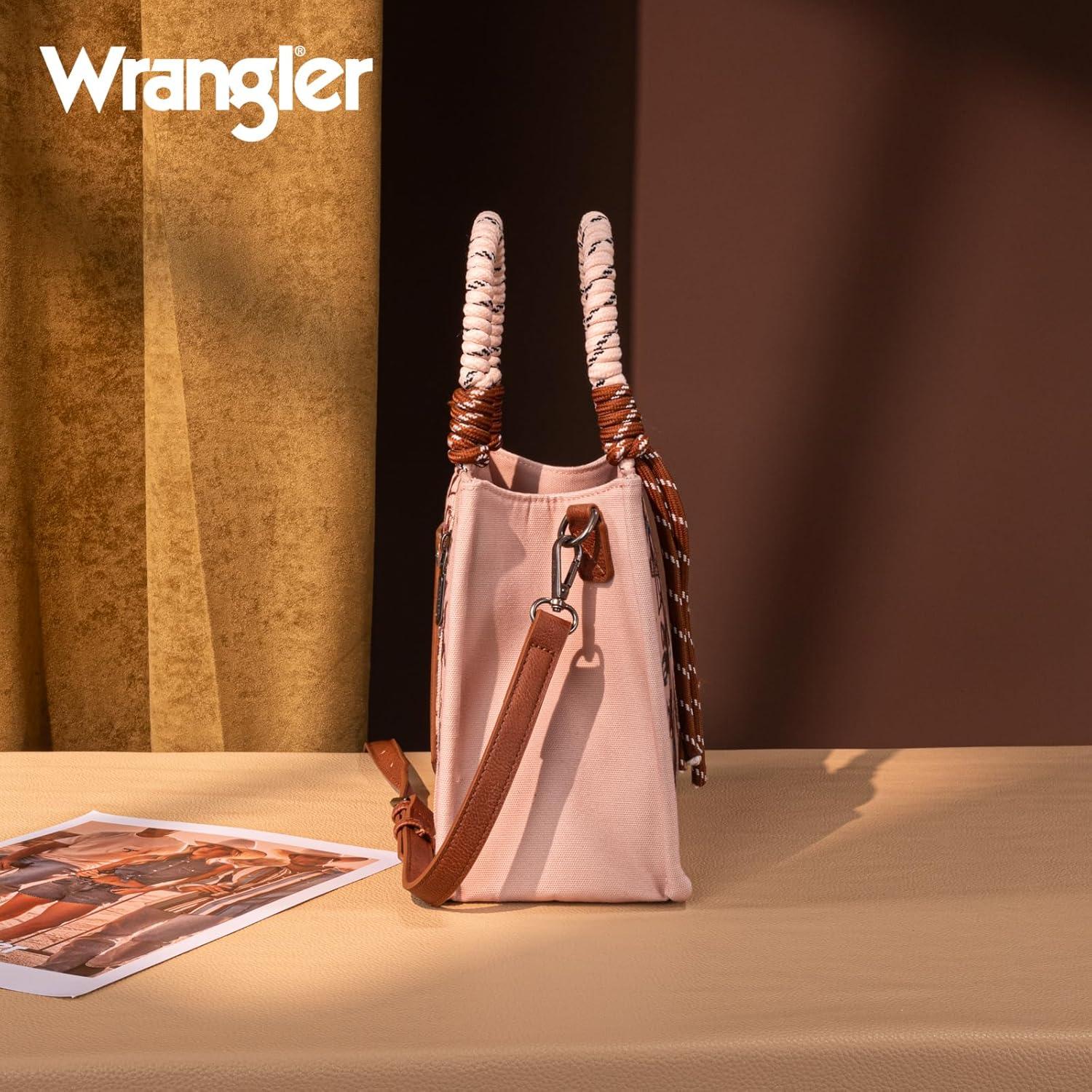 imageMontana West Wrangler Tote Bag Western Satchel Bags for Women with Braided Rope HandlesCowgirl Pink