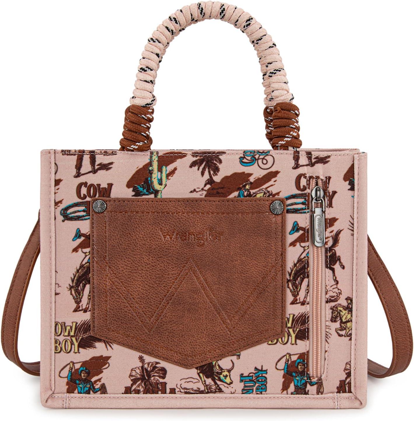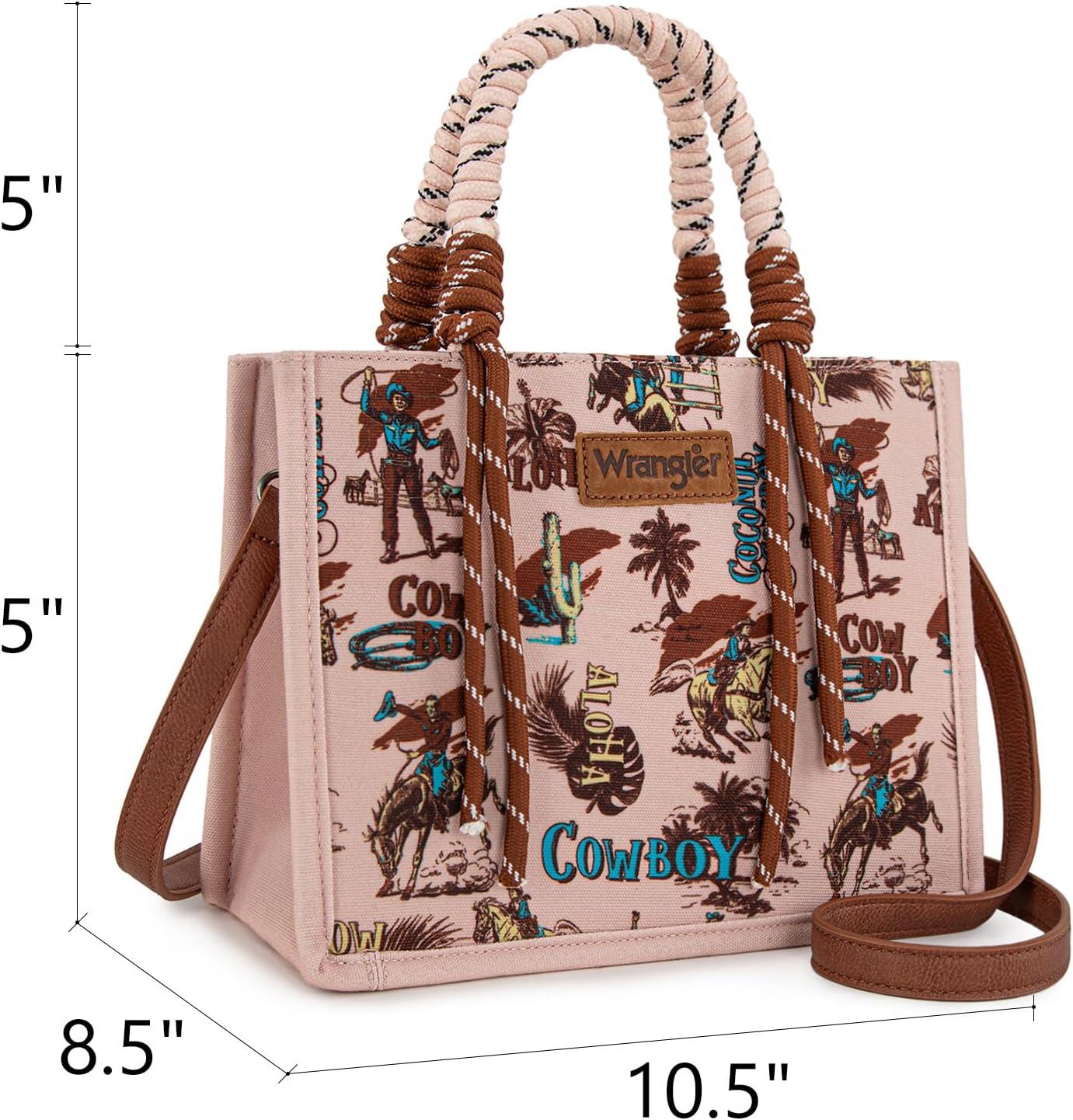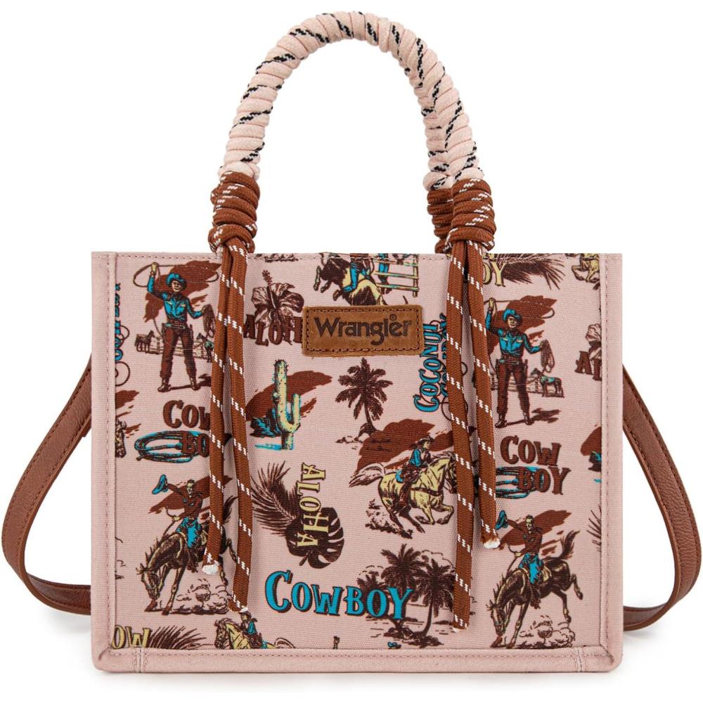 Montana West Wrangler Tote Bag Western Satchel Bags for Women with Braided Rope Handles(Cowgirl Pink)