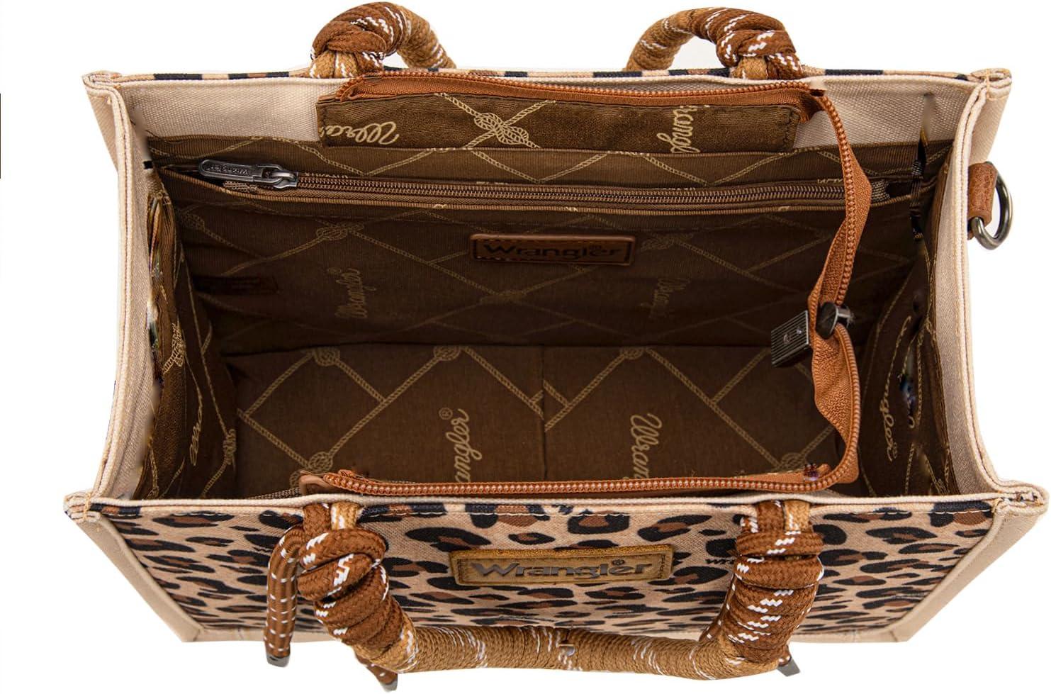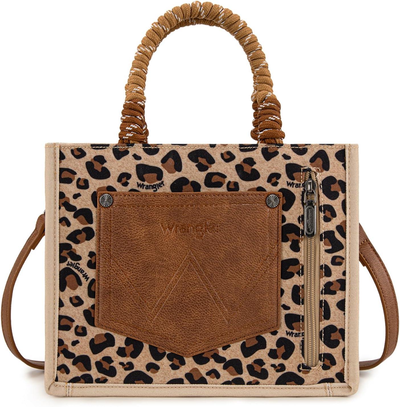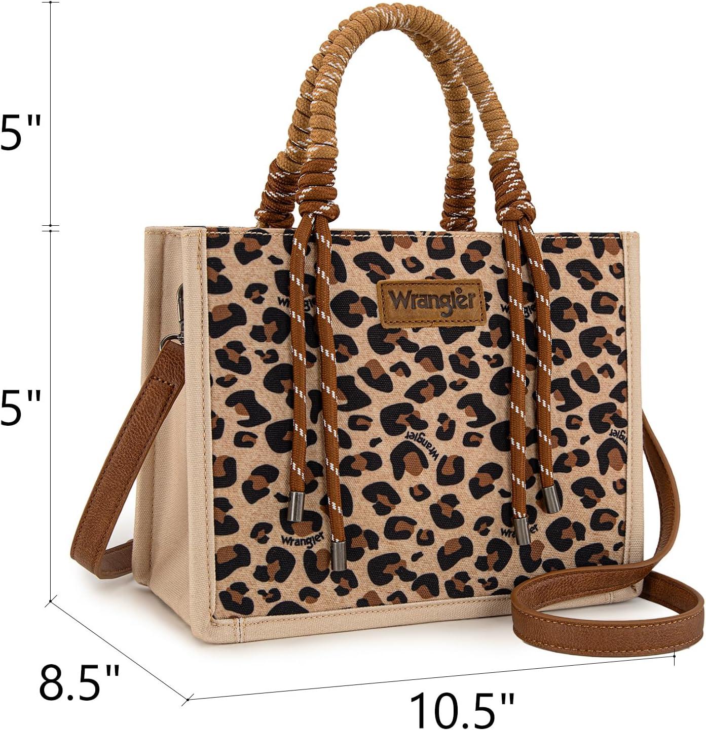 Montana West Wrangler Tote Bag Western Satchel Bags for Women with Braided Rope Handles(Leopard Brown Pu Strap)