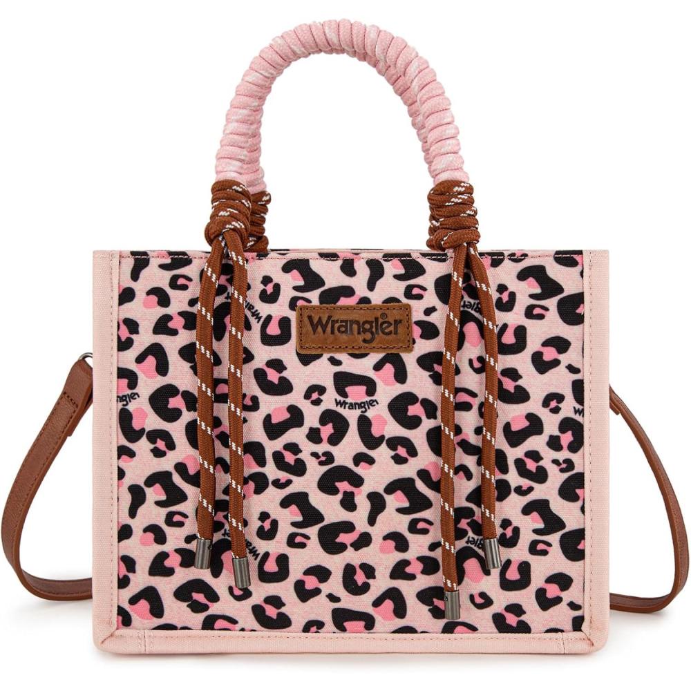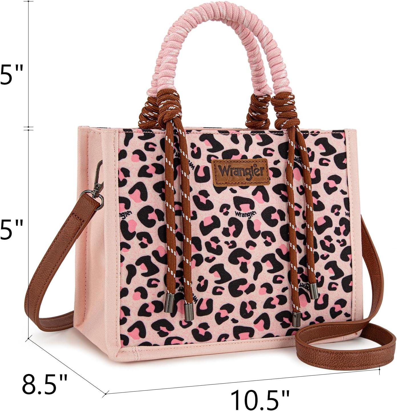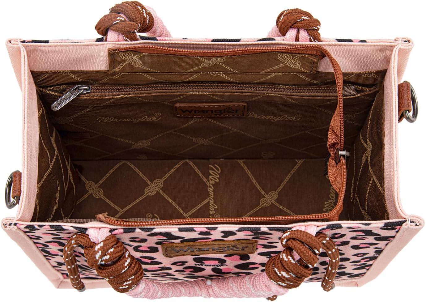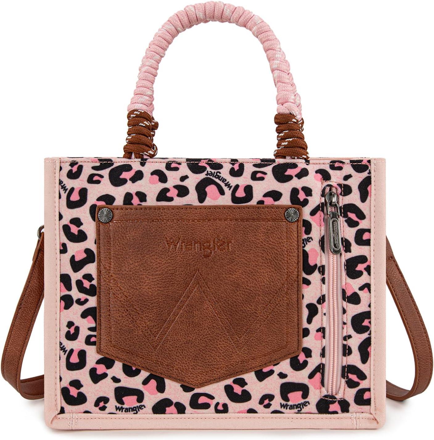 Montana West Wrangler Tote Bag Western Satchel Bags for Women with Braided Rope Handles(Leopard Pink Pu Strap)