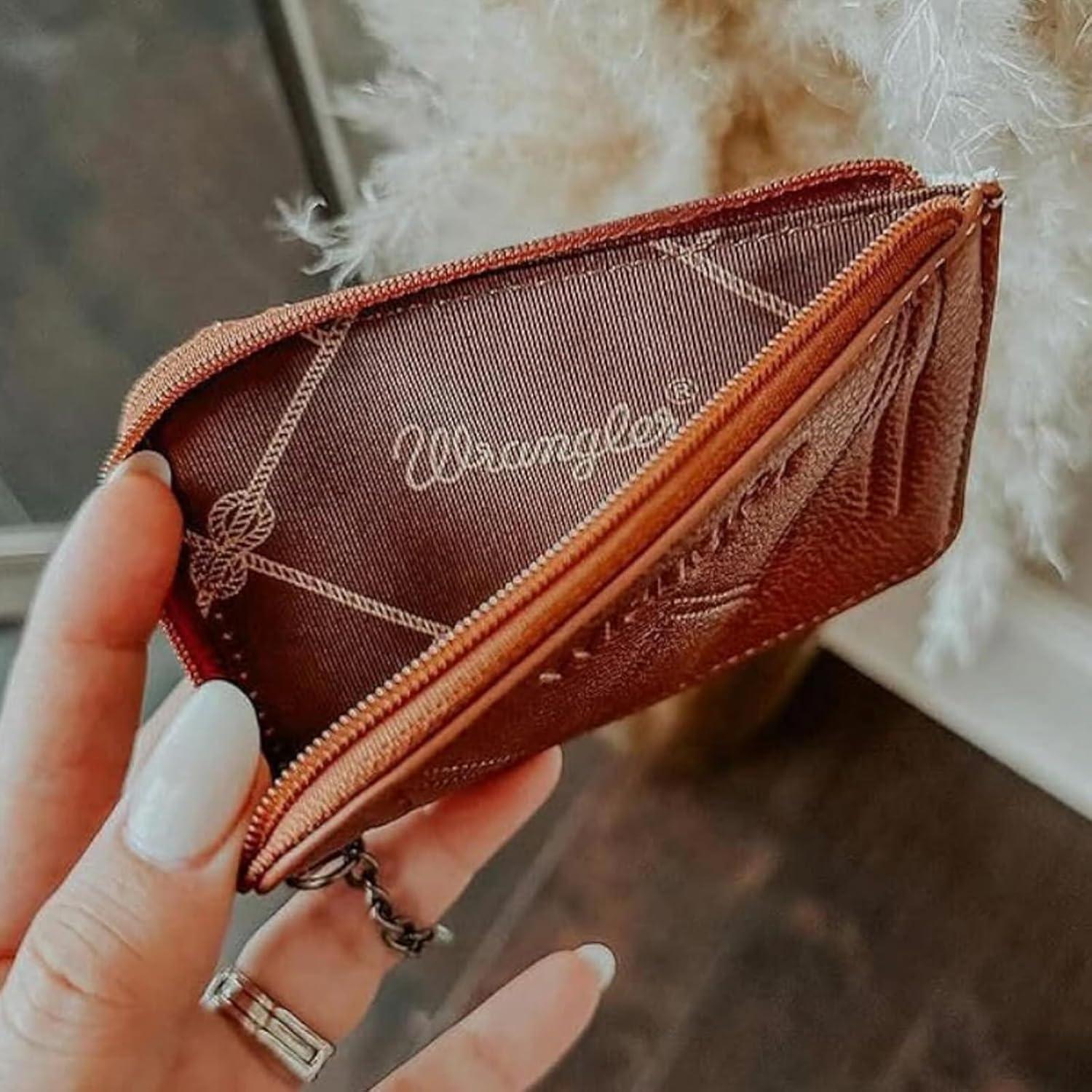 Wrangler card wallet comes with a metallic chain and clasp hook.