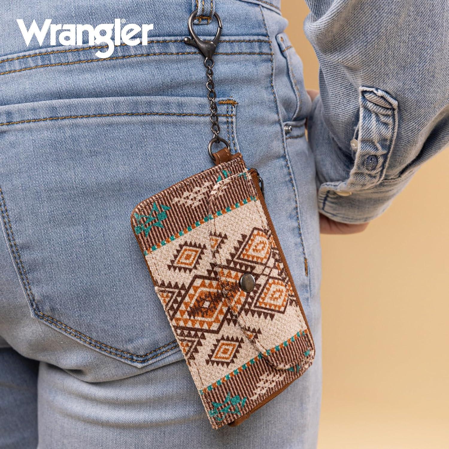 Wrangler wallet features a southwestern aztec design that exudes charm and elegance.