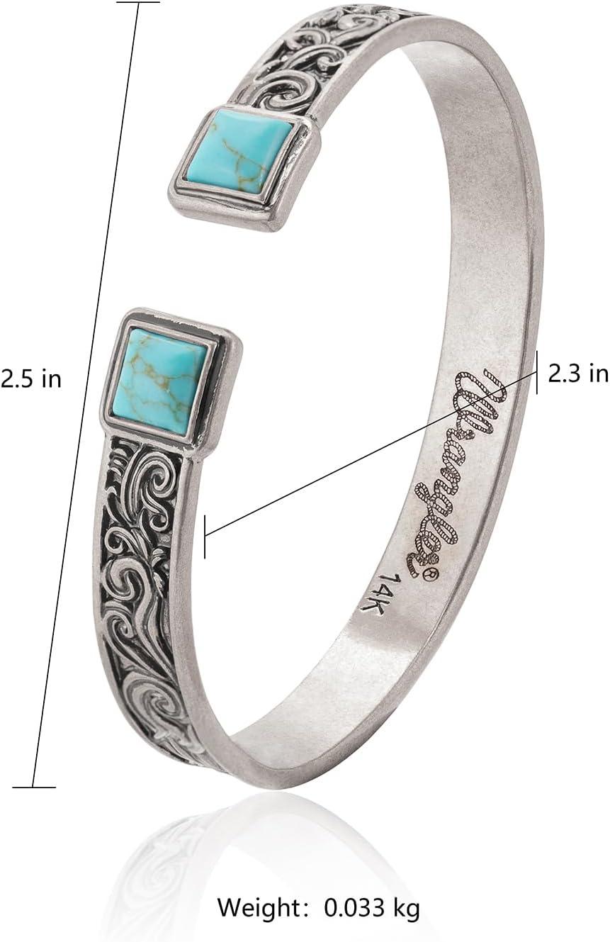 Montana West Wrangler Western Turquoise Bracelet for Women Cowgirl Country Adjustable Silver Plated Carved Floral Open Cuff Bangle Jewelry(Silver-Floral)