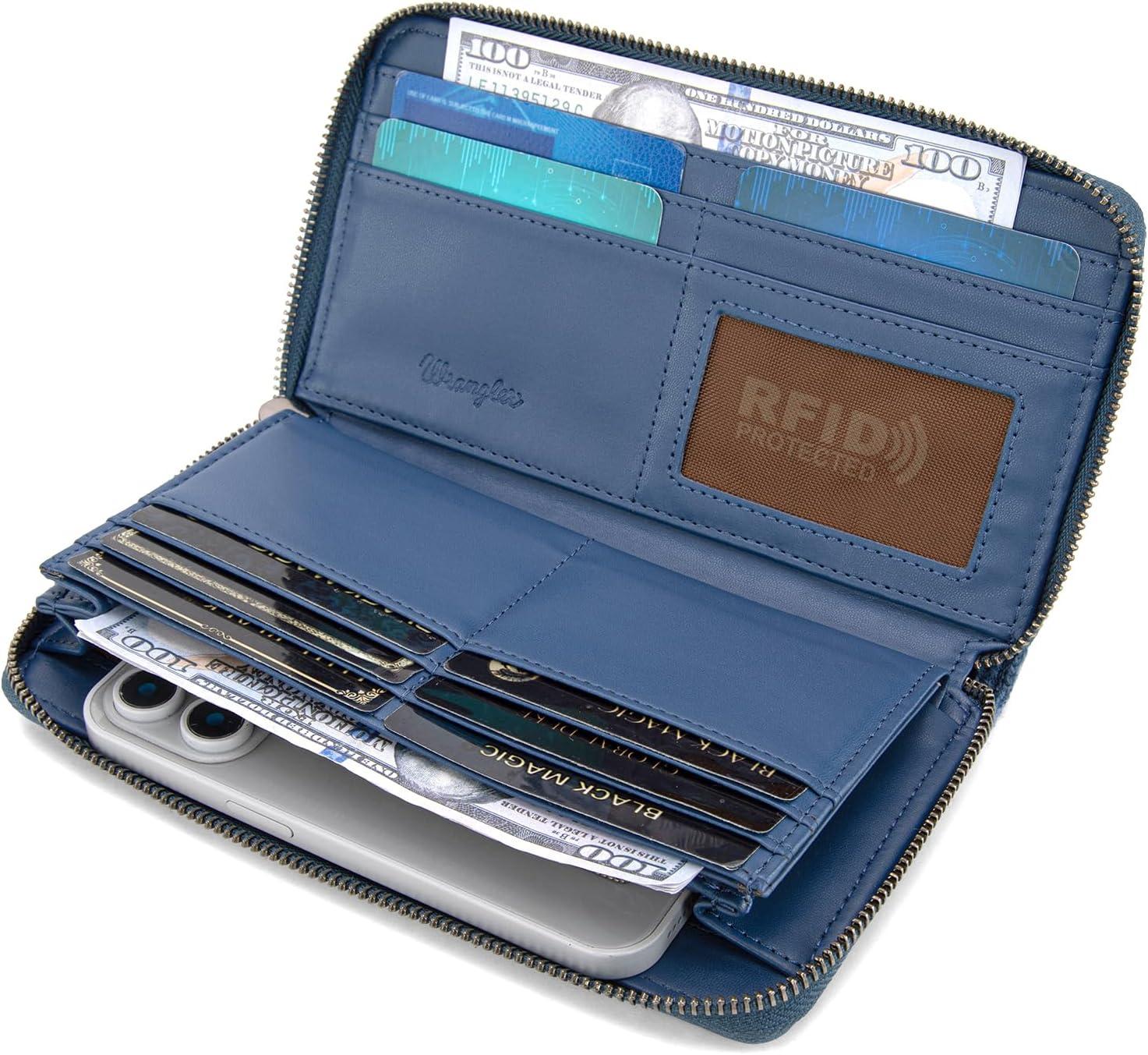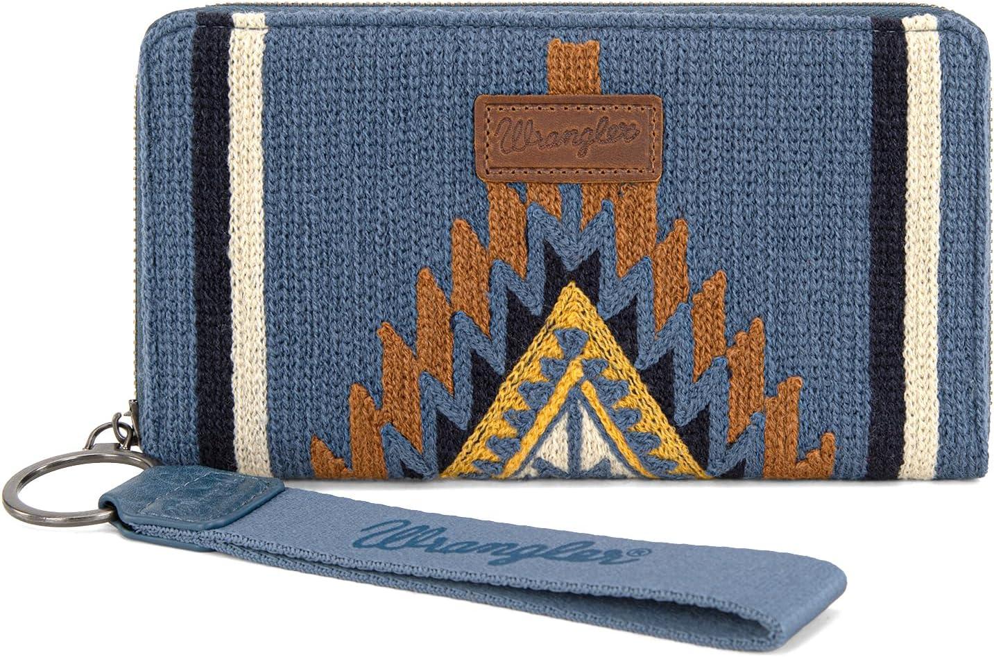 Montana West Wrangler Wristlet Wallet Western Wallets for Women Aztec Knitted Womens Wallet Large Capacity Ladies Wallet RFID Clutch Purse Credit Card Holder for Women(Angel Jean)