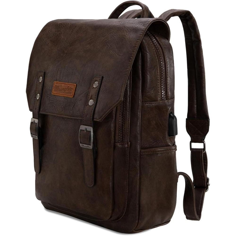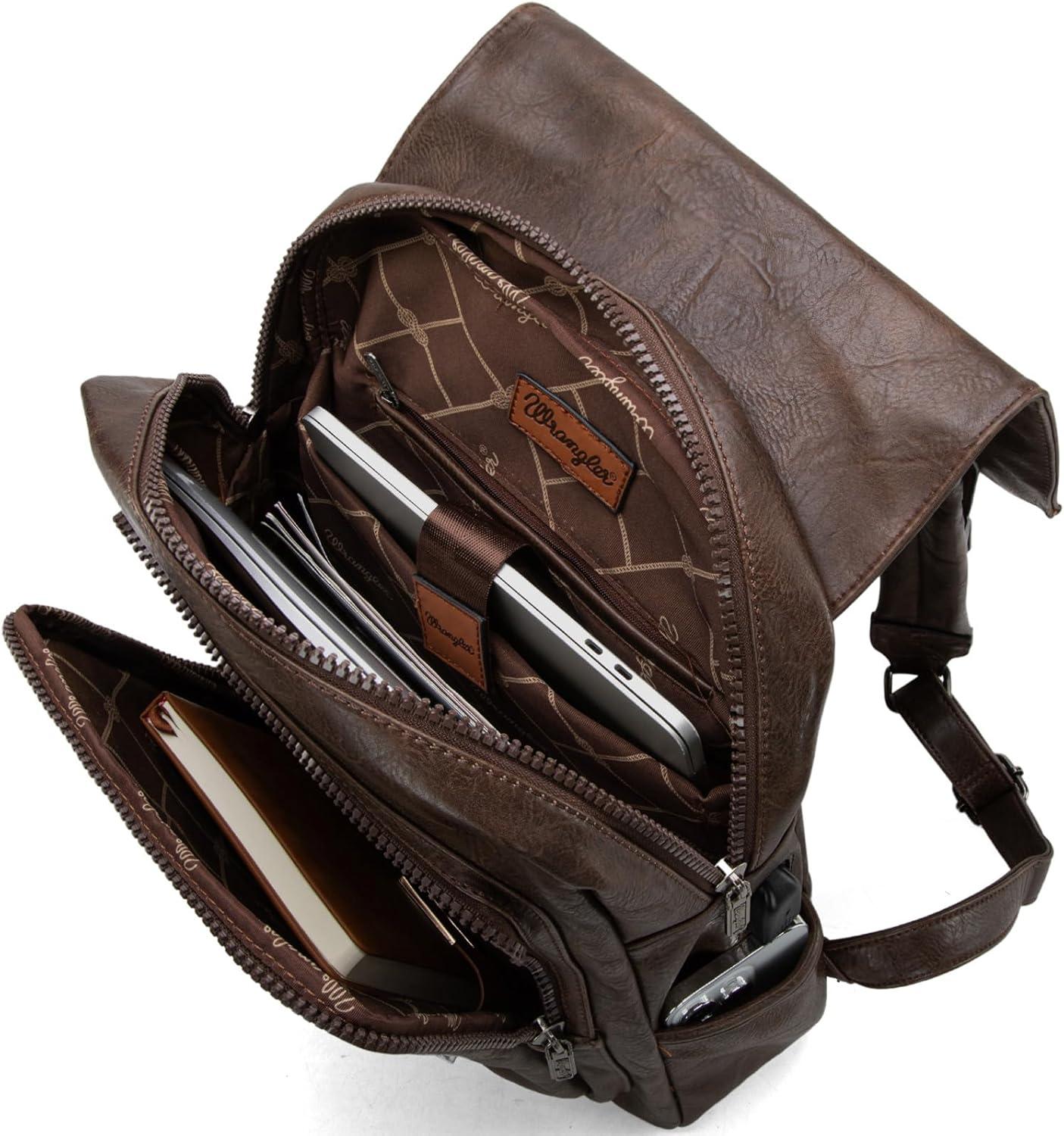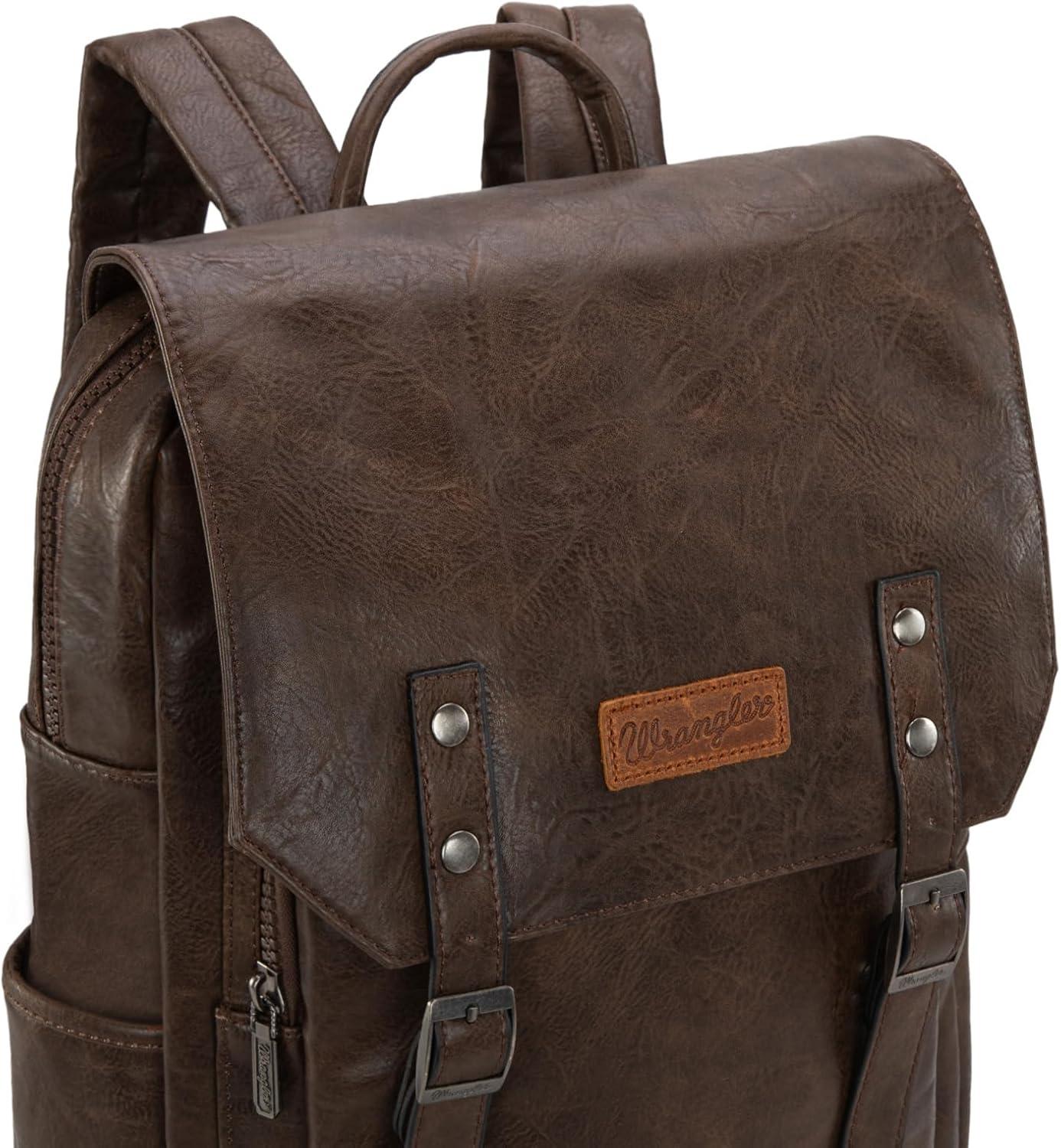 imageMontana West  Wrangler Brown Leather Laptop Backpack Purse Women and Men Unisex Fashion BackpackDark Brown