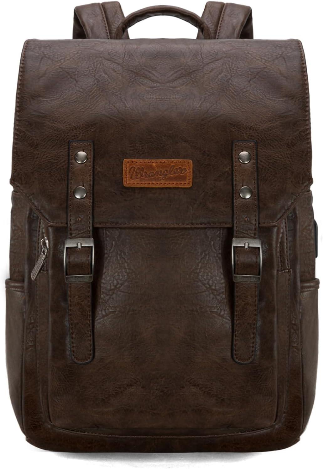 Montana West × Wrangler Brown Leather Laptop Backpack Purse Women and Men Unisex Fashion Backpack(Dark Brown)