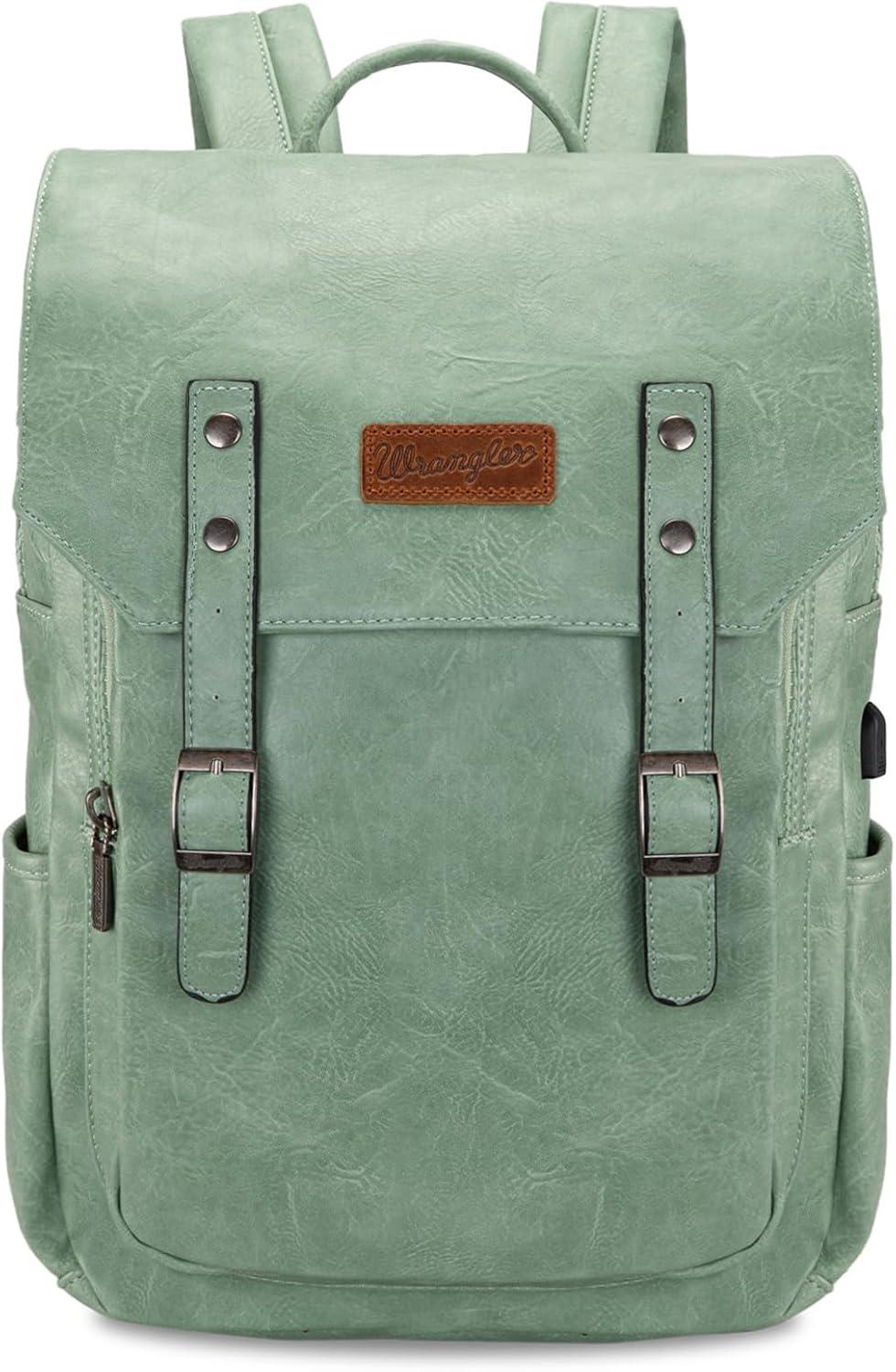 imageMontana West  Wrangler Brown Leather Laptop Backpack Purse Women and Men Unisex Fashion BackpackLight Green
