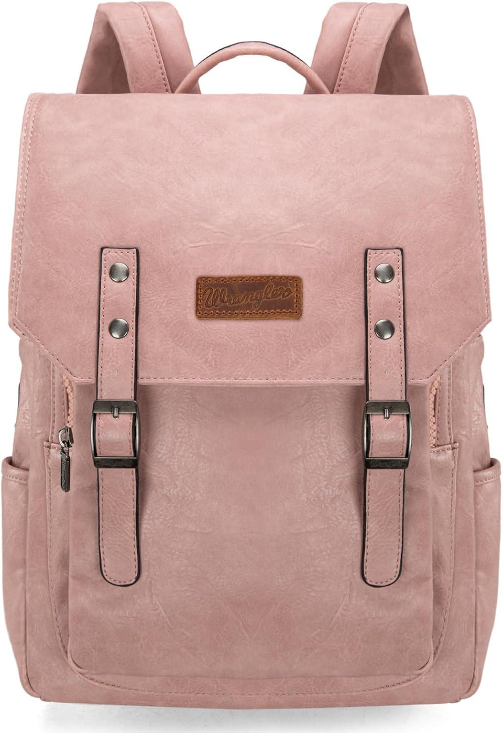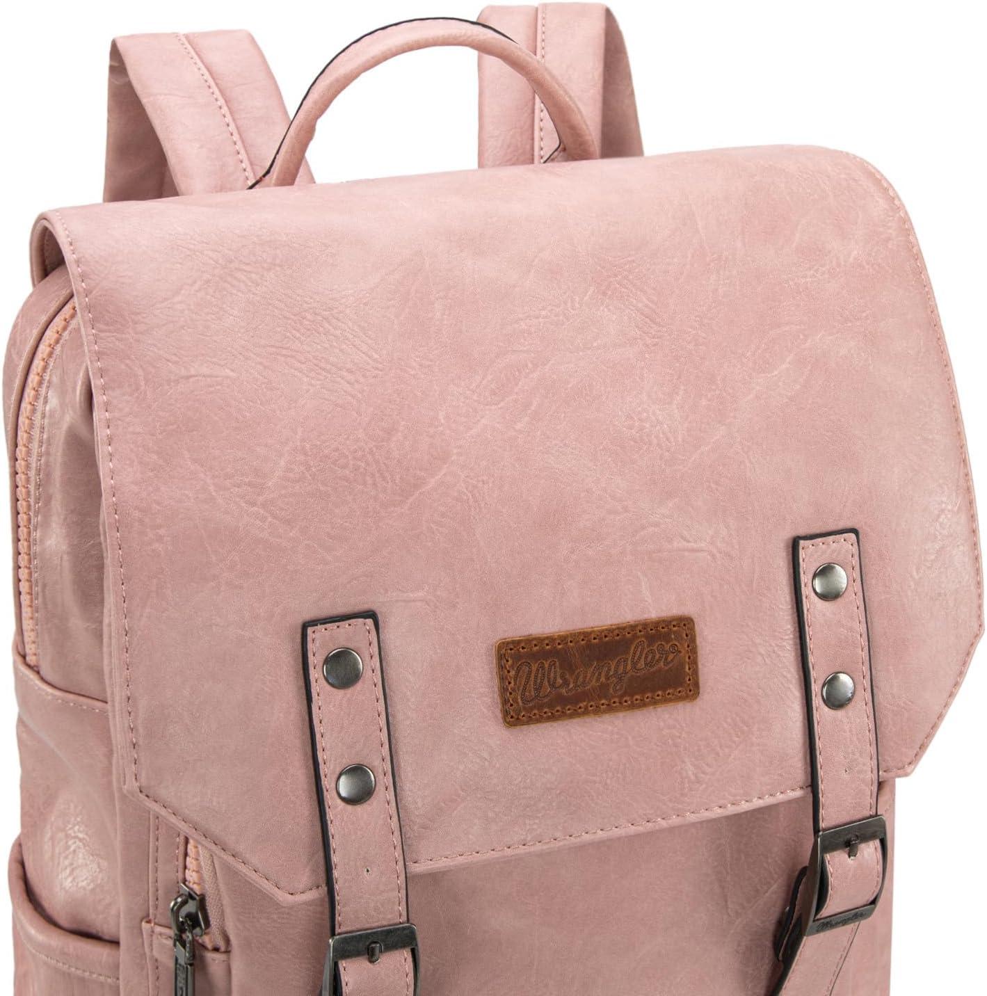 Montana West × Wrangler Brown Leather Laptop Backpack Purse Women and Men Unisex Fashion Backpack(Pink)