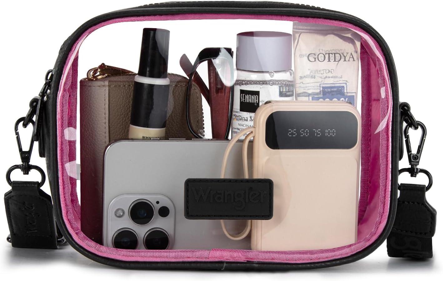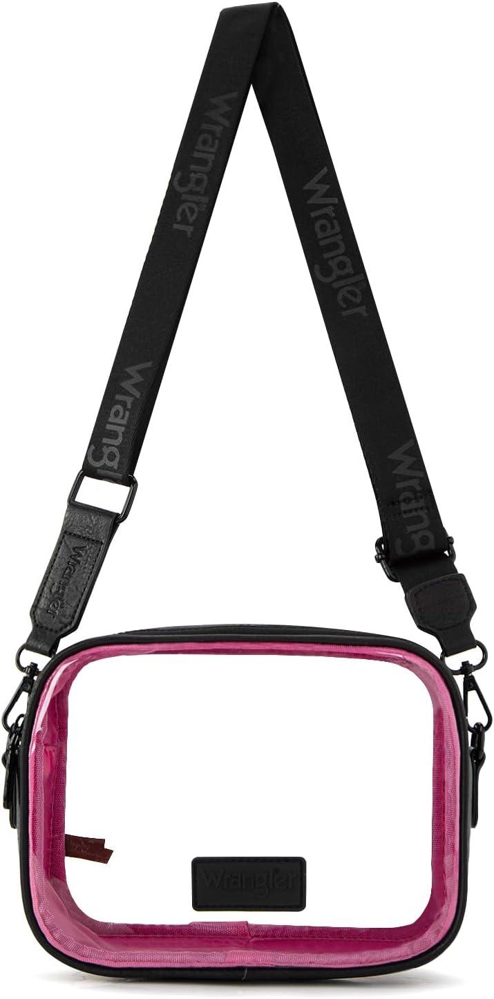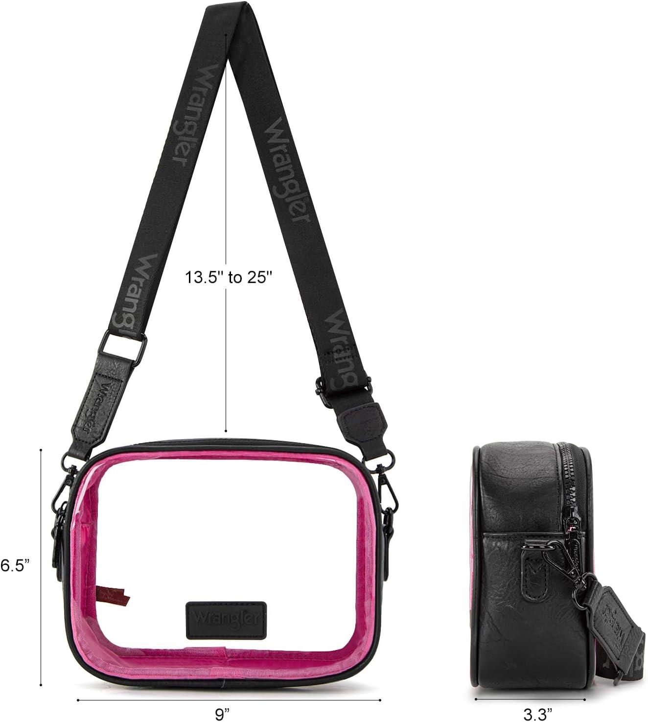 Montana West X Wrangler Clear Bag for Stadium Events Crossbody Purse for Concerts, Sports(Black-hotpink)
